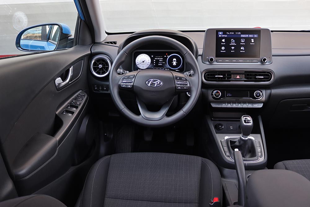 Το ανανεωμένο Kona είναι αρκούντως γρήγορο, απαιτώντας 11,5 δλ. για το 0-100 χλμ./ώρα και φτάνοντας μέχρι τα 181 χλμ./ώρα τελικής, αλλά αν αποφασίσεις να κινηθείς με το γκάζι στο πάτωμα δυο τινά σε περιμένουν. Αφενός αυξάνεις αρκετά τον θόρυβο του κινητήρα, ο οποίος δεν αρέσκεται ιδιαίτερα στο στροφάρισμα άνω των 5.000 σ.α.λ. Αφετέρου κάνεις το ίδιο -και περισσότερο- με την κατανάλωση, που φτάνει να τριγυρνά στα 10 λίτρα/100 χλμ. σε τέτοιες συνθήκες. Αν, αντίθετα, ακουμπήσεις στη ροπή του μοτέρ και την αρωγή του συνόλου των 48 Volt, βλέπεις τη μέση τιμή να διαμορφώνεται στα 7,3-7,5 λίτρα/100 χλμ.