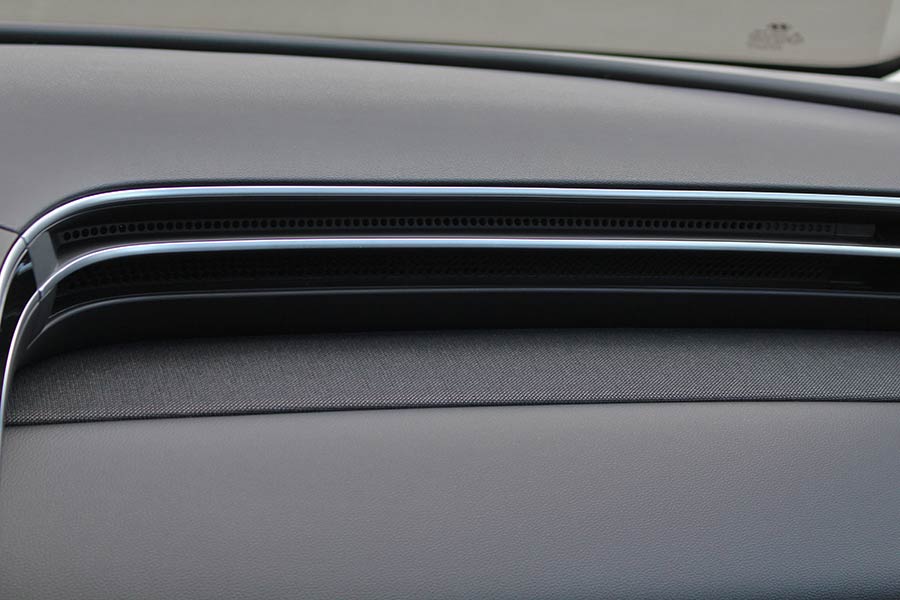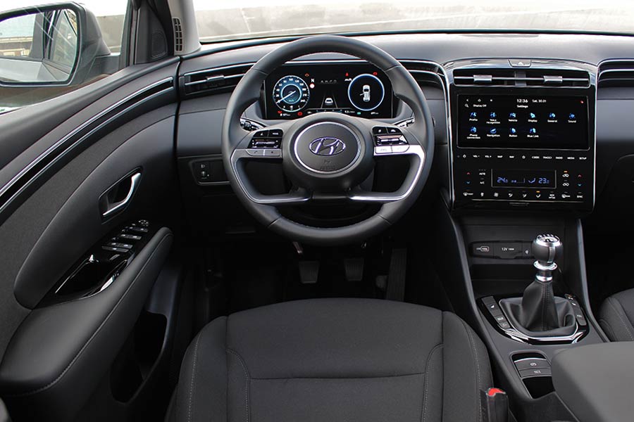 Το πρώτο αυθόρμητο επιφώνημα θαυμασμού που έρχεται αμέσως μπαίνοντας στο εσωτερικό του νέου Tucson είναι «ουαου!». Όχι μόνο για τον σχεδιασμό, αλλά για την τεχνολογία, τους χώρους και την ποιότητα κατασκευής με την πολυτέλεια που αποπνέει. Το εσωτερικό «Interspace» όπως το ονομάζει η Hyundai αποτελεί σημείο αναφοράς και… αντιγραφής για τον ανταγωνισμό. Οι απαλές καμπύλες και επίπεδες επιφάνειες, η συνοχή και αρμονία στον σχεδιασμό, το νέο τιμόνι και η υψηλή τεχνολογία, συνθέτουν ένα άρτιο εσωτερικό περιβάλλον για τον οδηγό και τους υπόλοιπους επιβάτες. Ο πλήρης ενδείξεων και κομψός ψηφιακός πίνακας οργάνων των 10,25 ιντσών και η έγχρωμη οθόνη αφής των 10,25 ιντσών (8 ιντσών στις βασικές εκδόσεις) με τα πλήκτρα αφής στην κεντρική κονσόλα αποτελούν ορισμένα κύρια σημεία αναφοράς. Οι αρχικοί ενδοιασμοί λόγω της απουσίας φυσικών διακοπτών ξεπερνιούνται άμεσα, αφού τα πλήκτρα αφής είναι πολύ άμεσα (ισχύει και για την οθόνη) και οι όποιες εντολές πραγματοποιούνται ταχύτατα, χωρίς να χρειαστούν δύο και τρία πατήματα με τα δάκτυλα. Νέο στοιχείο αποτελεί η τεχνολογία Multi-Air Mode με τους κρυφούς και ορατούς αεραγωγούς, οι οποίοι διαχέουν καλύτερα τον αέρα και ξεφεύγουν σχεδιαστικά από τα συνήθη πρότυπα.