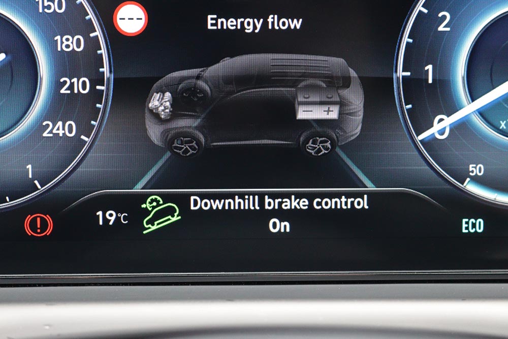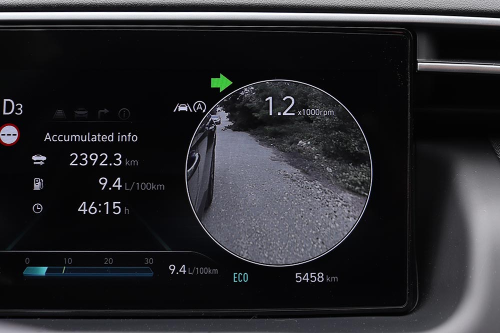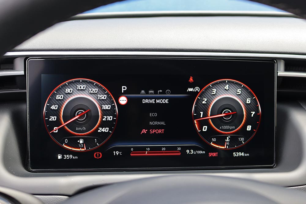 Πολύ καλό είναι το ταίριασμα του νέου κινητήρα 1.6 T-GDI Smartstream με το διπλού συμπλέκτη αυτόματο κιβώτιο 7DCT, καθώς επιτυγχάνεται περισσότερη άνεση, χωρίς ο οδηγός να νιώθει αποκομμένος από τα τεκταινόμενα του δρόμου. Το 1.600άρι turbo μοτέρ με το συνεχώς μεταβαλλόμενο χρονισμό των βαλβίδων (CVVD) των 180 ίππων και με την μπόλικη ροπή των 265 Nm από τις 1.500 σ.α.λ. χαρίζει γρήγορες επιδόσεις και είναι πολύ ισορροπημένο σε λειτουργία. Πρόσθετα το 48V υβριδικό σύστημα υποβοηθά τον κινητήρα στιγμιαία στην εκκίνηση και σε επιταχύνσεις, εξοικονομώντας ταυτόχρονα πολύτιμο καύσιμο. Η Hyundai ανακοινώνει 7,0 λτ. (με 159 γρ./χλμ. CO2), ωστόσο στη δοκιμή βρέθηκε στα 9,7 λτ./100 χλμ. με το πρόγραμμα Normal, μέσω του Drive Mode Select. Επιπλέον διαθέτει τα Eco και Sport για πιο ήπια ή δυναμική οδήγηση, αφού αναλόγως διαμορφώνεται το βάρος του τιμονιού, η απόκριση του κινητήρα και οι στροφές που αλλάζουν οι ταχύτητες. Μειονέκτημα μπορεί να βρουν κάποιοι το γεγονός ότι πάντα το αυτοκίνητο ξεκινάει με το Eco (π.χ. όταν είναι σβηστό και πάρει μπρος) και δεν αποθηκεύει το επιθυμητό προεπιλεγμένο πρόγραμμα (π.χ. Normal).