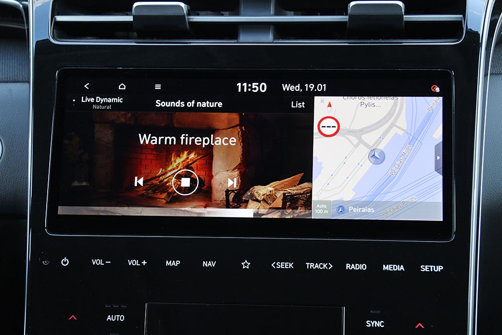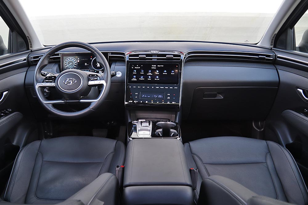 Ο οδηγός του Tucson κάθεται άνετα και ψηλά, έχοντας πλήρη επόπτευση των τεκταινόμενων του δρόμου, με το κάθισμα να ρυθμίζεται ποικιλοτρόπως και να είναι ιδιαίτερα αναπαυτικό. Τα πάντα είναι εκεί που τα θέλει ο οδηγός, όπως κι οι θήκες για τα καθημερινά αντικείμενα. Ιδιαίτερα χρηστική είναι και η βαθιά θήκη στο κεντρικό υποβραχιόνιο. Σε επίπεδο εργονομίας δεν θα χρειαστείτε μεγάλη περίοδο προσαρμογής, αφού τα περισσότερα ελέγχονται από την οθόνη του infotainment και από τα χειριστήρια αφής για το χειρισμό του κλιματισμού.