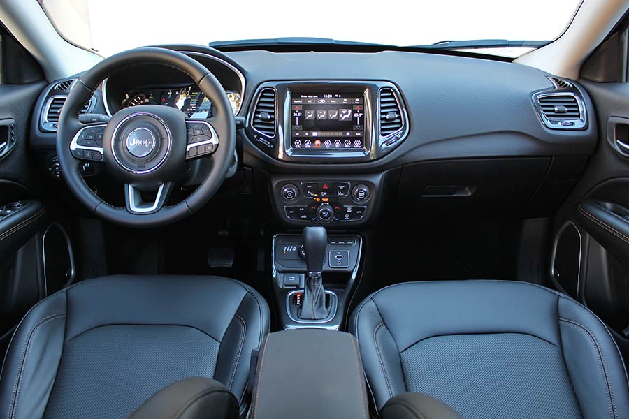 Ο θάλαμος των επιβατών του Compass 4xe δεν εμφανίζει καμία διαφορά σε σχέση με των υπολοίπων εκδόσεων, με εξαίρεση τον πίνακα οργάνων και την προσθήκη της επιλογής «Hybrid Electric Pages» στο μενού του συστήματος πολυμέσων Uconnect Navi με την οθόνη αφής των 8,4 ιντσών. Στη θέση του στροφόμετρου έχει τοποθετηθεί ο δείκτης απόδοσης/φόρτισης του ηλεκτροκινητήρα, ενώ ο ψηφιακός πίνακας οργάνων TFT με τα νέα γραφικά παρέχει περισσότερες πληροφορίες σχετικά με την κατάσταση του οχήματος και της λειτουργίας του plug-in hybrid συστήματος.
