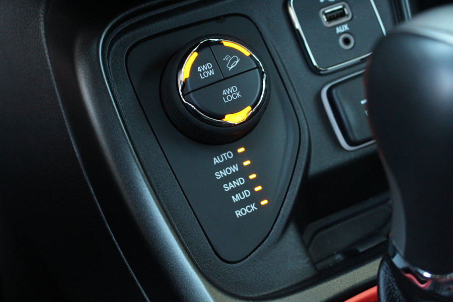Το τελευταίο διαθέτει έως και πέντε ρυθμίσεις ανάλογα με τον τύπο που εδάφους, Auto, Snow, Mud, Sand και Rock, με την τελευταία να προσφέρεται μόνο στην έκδοση Trailhawk, όπως και το κιβώτιο υποπολλαπλασιασμού των σχέσεων (αργό). Κάθε μια από τις παραπάνω ρυθμίσεις, σύμφωνα με την Jeep, έχει τον δικό της αλγόριθμο και βελτιστοποιεί έως και 12 συστήματα του αυτοκινήτου.