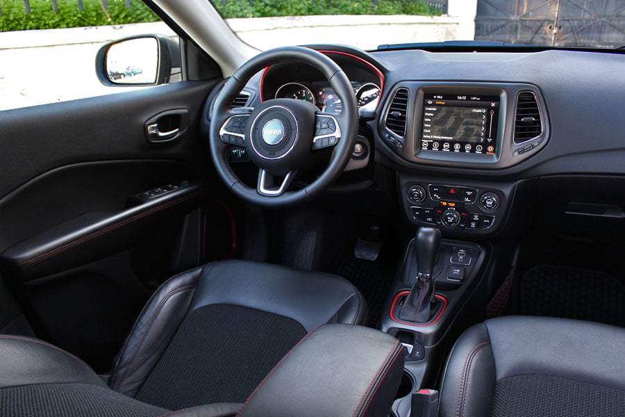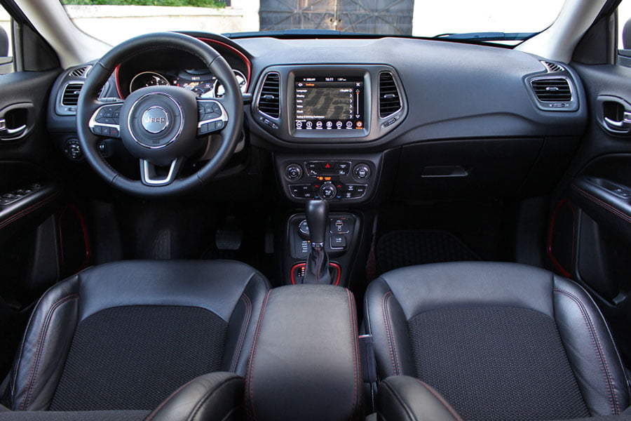 Από την πρώτη επαφή με την καμπίνα του Jeep Compass αντιλαμβάνεσαι ότι οι σχεδιαστές της μάρκας, χρησιμοποίησαν ποιοτικά υλικά, τα «έδεσαν» άψογα μεταξύ τους, δίνοντας παράλληλα μεγάλη σημασία στο φινίρισμα. Τα καθίσματα και οι επενδύσεις των θυρών έχουν «ντυθεί» με ποιοτικό δέρμα, ενισχύοντας έτσι τον πολυτελή χαρακτήρα του μοντέλου. Ο εξοπλισμός είναι πλούσιος, καθώς ενσωματώνει τα προηγμένα συστήματα υποβοήθησης του οδηγού, ενώ στο ανώτερο σημείο της κεντρικής κονσόλας υπάρχει η οθόνη αφής των 8,4 ιντσών για το σύστημα infotainment U Connect. Ο οδηγός έχει στη διάθεσή του έναν ευανάγνωστο πίνακα οργάνων με κλασικό στροφόμετρο και ταχύμετρο και στη μέση απολαμβάνει μια οθόνη TFT 7 ιντσών, που προσφέρει περαιτέρω πληροφόρηση.