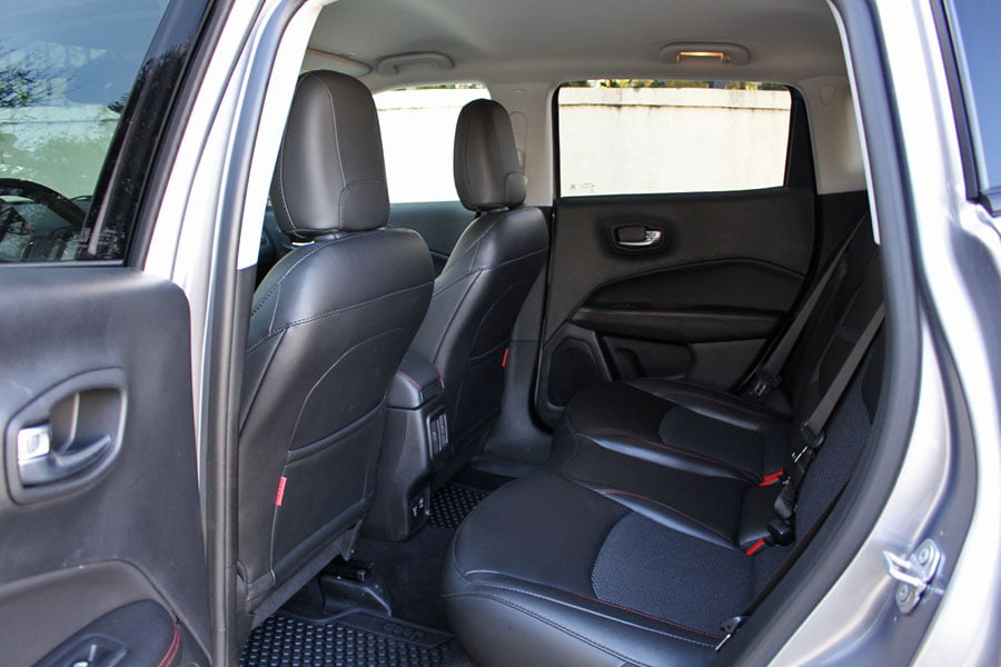 Σε επίπεδο χώρων τώρα, παρά το γεγονός πως το Compass κατασκευάστηκε στη πλατφόρμα Small Wide 4×4 του Renegade, έχει όμως μεγαλύτερο μήκος κατά 150 χλστ., χαρακτηριστικό που προσφέρει μεγαλύτερους χώρους επιβατών. Ειδικά οι πίσω θα βολευτούν άνετα, με ικανοποιητικό χώρο για το κεφάλι και τα πόδια τους, με τις θήκες για τα καθημερινά μικροαντικείμενα να επαρκούν. Όμως ο χώρος αποσκευών είναι ολίγον περιορισμένος, μιας και με την χρήση (απαραίτητος για την off road χρήση που θα γίνει) εφεδρικού τροχού ανέρχεται στα 388 λίτρα (438 λίτρα με κιτ επισκευής).