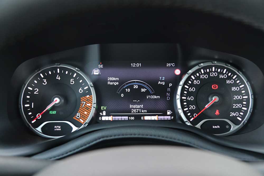 Το Renegade e-Hybrid εκκινεί αμιγώς ηλεκτρικά χωρίς τη χρήση του 1.5Τ και σε ταχύτητες έως περίπου τα 20 χλμ./ώρα. Αντίστοιχα στο παρκάρισμα δεν εμπλέκεται ο θερμικός κινητήρας, ενώ εν κινήσει αφήνοντας το πεντάλ του γκαζιού στο ρολάρισμα σβήνει το μοτέρ βενζίνης. Συνολικά και με λίγο προσεγμένο πάτημα του πεντάλ του γκαζιού, εξοικονομείται αρκετή βενζίνη. Στη δοκιμή, η κατανάλωση βρέθηκε στα 7,1 λτ./100 χλμ., με περιθώρια να πέσει λίγο ακόμα. Η Jeep ανακοινώνει εκπομπές CO2 130 γρ./χλμ., τα οποία ισούνται με 83,2 ευρώ τέλη κυκλοφορίας. Παράλληλα, το μικρό υβριδικό Jeep είναι αρκετά σβέλτο, με 0-100 χλμ./ώρα σε 9,7 δλ. και μέγιστη ταχύτητα 193 χλμ./ώρα. Η εναλλαγή μεταξύ ηλεκτροκινητήρα και βενζινοκινητήρα έχει κάποια περιθώρια βελτίωσης ως προς την ομαλότητα, όπως ισχύει αντίστοιχα και για την αμεσότητα του DDCT στο kickdown.