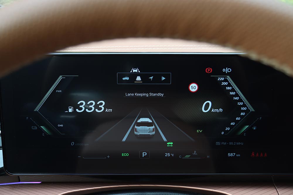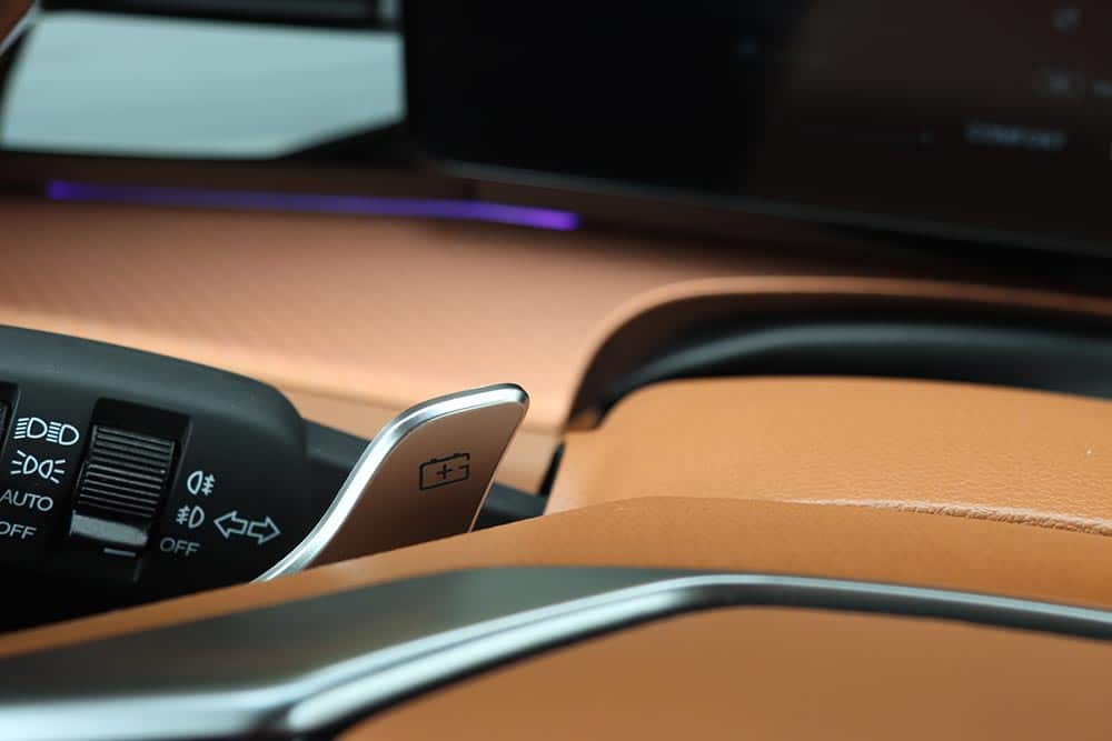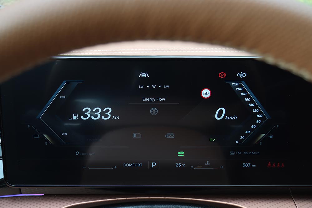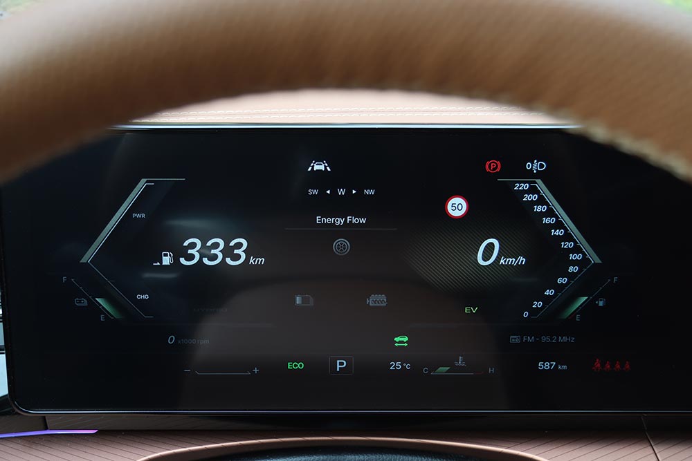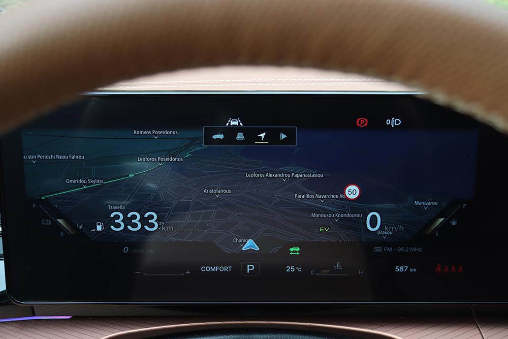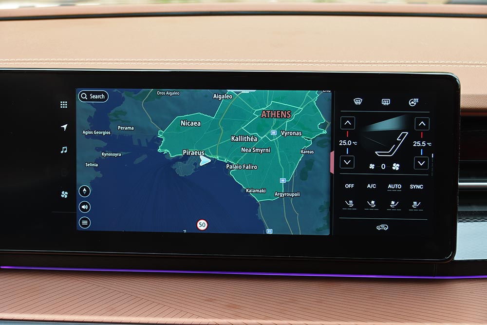 Στο εσωτερικό του, η φιλικότητα που αποπνέει η καμπίνα είναι διάχυτη. Οι επιφάνειες είναι μαλακές σε αρκετά σημεία, η συναρμογή προσεγμένη και η συνολική ατμόσφαιρα αποπνέει μια αίσθηση ανώτερης ποιότητας – χάρη και στις δερμάτινες επενδύσεις σε καθίσματα, πόρτες και ταμπλό στην έκδοση της δοκιμής μας. Μπροστά από τον οδηγό δεσπόζει μια ψηφιακή οθόνη 12,3 ιντσών με ευδιάκριτες ενδείξεις, ενώ δίπλα της ακριβώς υπάρχει μία ακόμα, ίδιας διαγωνίου, για την απεικόνιση και έλεγχο του συστήματος πολυμέσων. Η εργονομία είναι καλή στο σύνολό της, με εξαίρεση την κάπως αργή απόκριση της κεντρικής οθόνης αφής και την απουσία φυσικών διακοπτών (πχ για τον έλεγχο του κλιματισμού). Ωστόσο, το μενού έχει καλή δομή με αποτέλεσμα να αποδεικνύεται εύχρηστο. Με τη σειρά τους, τα καθίσματα είναι άνετα, με σωστή στήριξη και ρυθμίσεις, και στις πιο πλούσιες εκδόσεις είναι θερμαινόμενα, όπως και το τιμόνι.