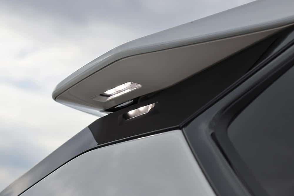 Η αιωρούμενη κονσόλα ανάμεσα από τα εμπρός καθίσματα είναι ένα ακόμα σχεδιαστικό σημείο αναφοράς. Ενσωματώνει το περιστροφικό χειριστήριο για το αυτόματο κιβώτιο ταχυτήτων Shift-By-Wire, το κουμπί εκκίνησης EV, βάση ασύρματης φόρτισης κινητού και ποτηροθήκες. Από κάτω υπάρχει μια μεγάλη θήκη, συν θήρες USB.