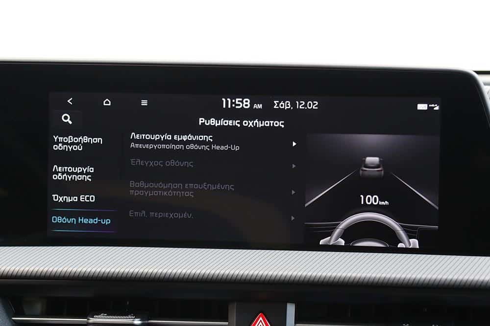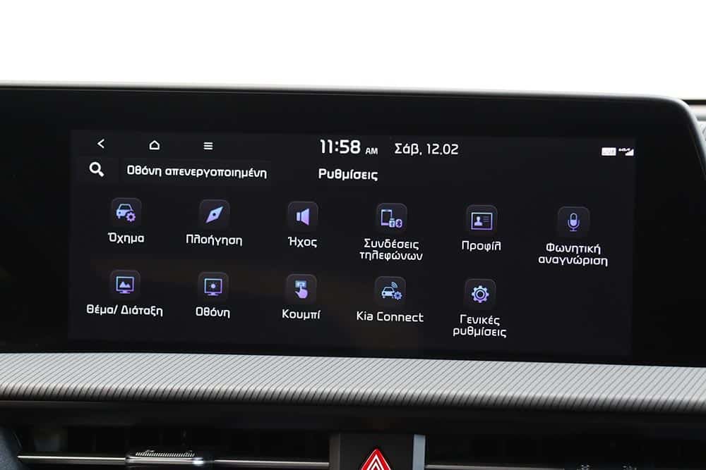 Όσο θέλεις να περιεργάζεσαι κάθε πτυχή της εξωτερικής εμφάνισης του Kia EV6, άλλο τόσο θες να κοιτάζεις και να «ανακαλύπτεις» το εσωτερικό του. Ένα από τα πιο εντυπωσιακά στοιχεία είναι το ενιαίο κυρτό πάνελ με τις οθόνες. Αυτό περιλαμβάνει δύο καμπύλες ευρείες οθόνες υψηλής ανάλυσης 12,3 ιντσών, καλυμμένες με λεπτή μεμβράνη και ειδικά φιλμ για τη μείωση της επίδρασης από το φως. Ο προσαρμόσιμος πίνακας οργάνων και το σύστημα infotainment συνδέονται σαν να είναι τυλιγμένα γύρω από ένα σώμα από ενισχυμένο κρύσταλλο. Στις υπηρεσίες του οδηγού είναι και το head-up display (HUD) με τεχνολογία επαυξημένης πραγματικότητας (Augmented Reality), που προβάλει λεπτομερείς οδηγίες πάνω στο δρόμο. Στο κάτω μέρος της κεντρικής κονσόλας βρίσκονται και τα χειριστήρια αφής για τον κλιματισμό ή το infotainment, τα οποία αλλάζουν με το πάτημα ενός διακόπτη. Σε κάθε περίπτωση όλα τα συστήματα αφής ανταποκρίνονται εξαιρετικά άμεσα και με απόλυτη ακρίβεια στις εντολές του χρήστη.