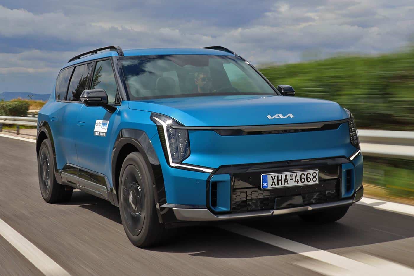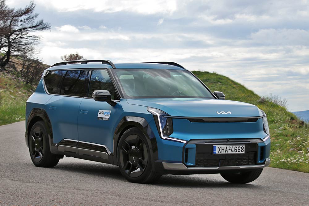 Οι δύο ηλεκτροκινητήρες (ένας εμπρός-ένας πίσω) των 192 ίππων και 350 Nm έκαστος, παρέχουν μια συνολική απόδοση 385 ίππων και 700 Nm, που είναι αρκετή για να κινήσει τον «εξολοθρευτή» σε γρήγορους ρυθμούς. Τα μόλις 5,3 δλ. που απαιτούνται για το τυπικό 0-100 χλμ./ώρα αποδεικνύουν του λόγου το αληθές, ενώ από εκεί και πάνω τα νούμερα στο ψηφιακό κοντέρ ανεβαίνουν πολύ γρήγορα. Βέβαια δεν υπάρχει κανένας λόγος ο οδηγός να «ξελιγώνει» την μπαταρία των 99,8 kWh, αφού ακόμα και με την επιλογή Eco δεν του λείπει δύναμη, ενώ με το i-Pedal (υπάρχουν τέσσερις διαβαθμίσεις μέσω των paddles) εξυπηρετεί πολύ στα φρεναρίσματα, συν του ότι φορτίζει η μπαταρία. Από πλευράς κατανάλωσης, όταν οδηγείται συνετά, μπορεί να πετύχει το νούμερο των 22,8 kWh/100 χλμ. που ανακοινώνει ο κατασκευαστής. Αν ο οδηγός «παρασυρθεί» από την γλυκιά επιτάχυνση, τότε θα δει νούμερα στο trip computer της τάξης των 30 kWh/100 χλμ. Οπότε σε νορμάλ ρυθμούς η αυτονομία βρίσκεται κοντά στα 400+ χιλιόμετρα. Αναφορικά με τη φόρτιση, η αρχιτεκτονική των 800 Volt μπορεί να δώσει έως 226 χλμ. στα AWD μέσα σε 15 λεπτά. Από εκεί και πέρα οι χρόνοι (όπως σε όλα τα EVs) εξαρτώνται από τον τύπο του φορτιστή. Πολύ σημαντικό είναι ότι το EV9 παρέχει και αμφίδρομη φόρτιση Vehicle-to-Load (V2L), που σημαίνει ότι μπορεί να τροφοδοτεί διάφορες ηλεκτρικές συσκευές.