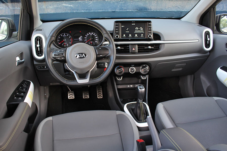 Όπως το αμάξωμα, έτσι και το εσωτερικό του νέου Kia Picanto κερδίζει αμέσως τις εντυπώσεις με το μοντέρνο του σχεδιασμό, τα ανοιχτόχρωμα υλικά και τον πλούσιο και συνάμα hi tech εξοπλισμό του. Τα υλικά που έχουν χρησιμοποιηθεί είναι πολύ καλά, για τα επίπεδα της κατηγορίας, ενώ το ίδιο ισχύει και για τη συναρμογή τους. Φυσικά η έκδοση X-Line έχει τον δικό της χαρακτήρα, ο οποίος κερδίζει πόντους από τα δίχρωμα υλικά και τις λαχανί λεπτομέρειες με τις ραφές σε ανάλογο χρώμα, να βρίσκονται σε αρμονία με το αμάξωμα.