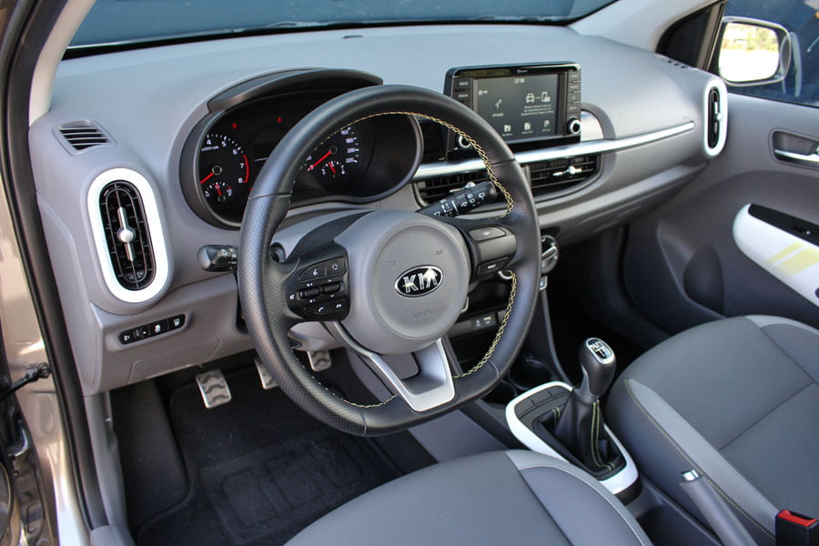 Το δερμάτινο σαλόνι είναι σίγουρα κάτι που δεν περιμένεις από ένα αυτοκίνητο πόλης και αποτελεί ευχάριστη έκπληξη. Ο πίνακας οργάνων είναι ευανάγνωστος και πλήρης ενδείξεων, ενώ στο κέντρο του ταμπλό κυριαρχεί η οθόνη αφής του συστήματος πολυμέσων 7 ιντσών. Το τιμόνι είναι και αυτό δερμάτινο με χειριστήρια και τα πεντάλ είναι αλουμινένια. Σε κορυφαίο επίπεδο παραμένει και η ευρυχωρία του Kia Picanto, καθώς υπάρχει αρκετός χώρος για τέσσερις ενήλικες, οι θήκες μικροαντικειμένων είναι μεγάλες, ενώ το πορτμπαγκάζ είναι στα 255 λίτρα και με την αναδίπλωση του πίσω καθίσματος φτάνει στα 1.010 λίτρα.
