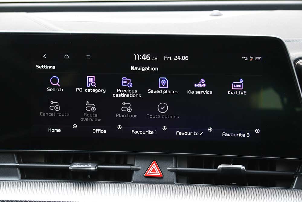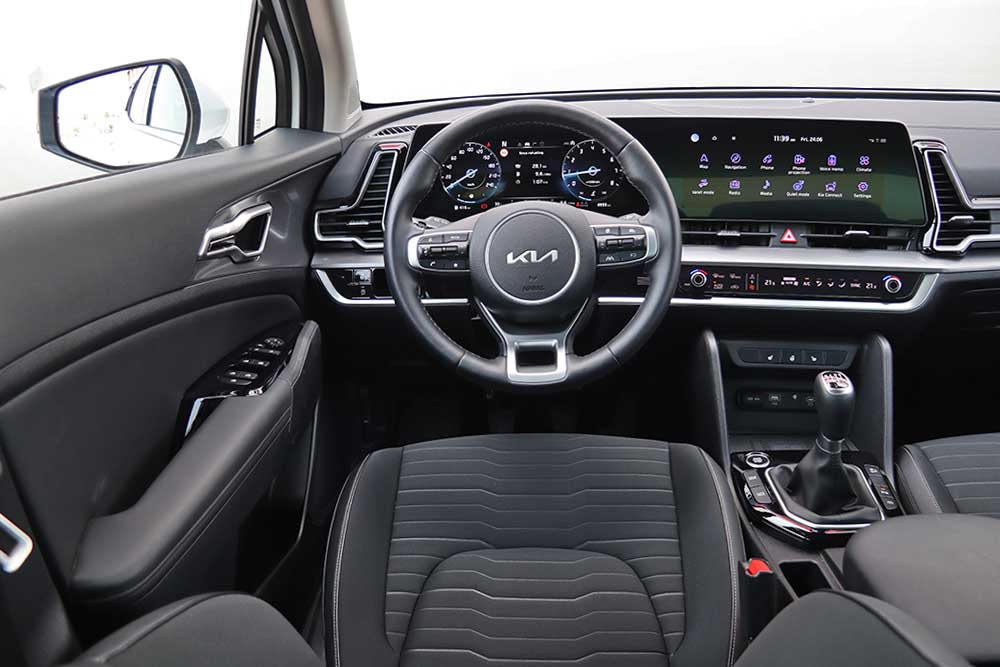 Η τεράστια αναβάθμιση είναι παρούσα και στο εσωτερικό του νέου Sportage, όπου έχει βελτιωθεί παντού και δεν του λείπει απολύτως τίποτα. Το πρώτο στοιχείο που τραβά τα βλέμματα είναι το Integrated Curved Display που ενσωματώνει σε μία ενιαία διάταξη τον πλήρως ψηφιακό πίνακα οργάνων των 12,3 ιντσών και την υψηλής ανάλυσης οθόνη αφής 12,3 ιντσών. Περιλαμβάνεται ακόμα εργοστασιακό σύστημα πλοήγησης και το σύστημα τηλεματικής Kia Connect με προηγμένες δυνατότητες ελέγχου των λειτουργιών του οχήματος εξ αποστάσεων μέσω smartphone (από την έκδοση Titanium και άνω). Τεχνολογικό highlight αποτελεί και το διαισθητικό χειριστήριο δύο λειτουργιών στην κεντρική κονσόλα. Μέσω αυτού ο οδηγός μπορεί να ελέγξει από τα πολύ άμεσα χειριστήρια αφής το σύστημα πολυμέσων και πλοήγησης ή τον κλιματισμό, με ένα μόνο άγγιγμα και στο ίδιο πάνελ. Βέβαια, όλη αυτή η ψηφιακότητα χρειάζεται εξοικείωση για όσους δεν είναι μαθημένοι και έχουν στην κατοχή τους ένα παλαιότερο αυτοκίνητο με αναλογικά συστήματα και κουμπιά.