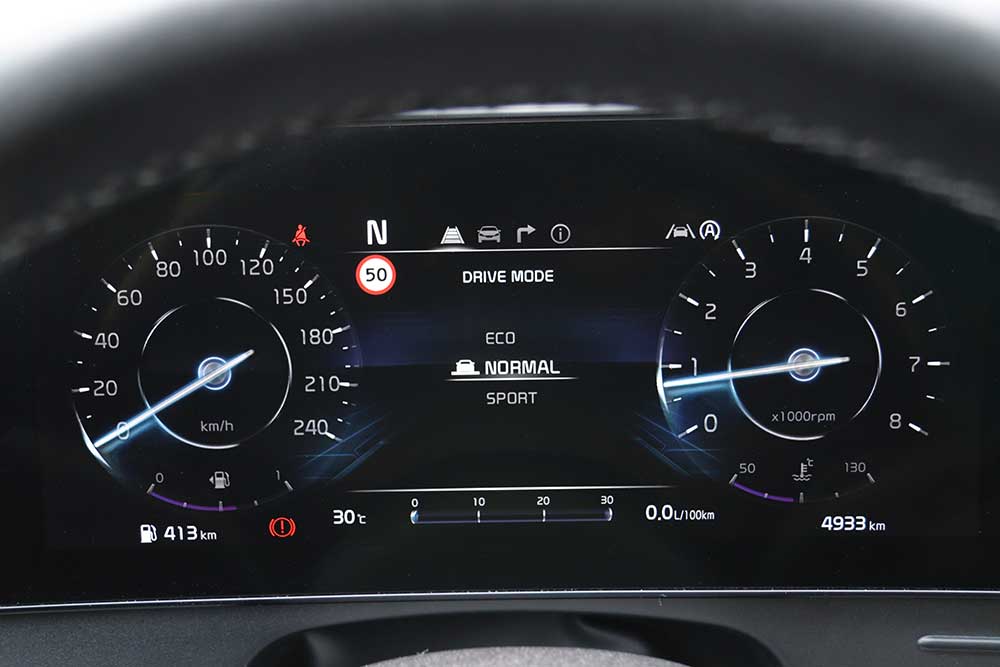 Στον αυτοκινητόδρομο διατηρεί «ξεκούραστα» ταχύτητες ταξιδιού (130 χλμ./ώρα με σχεδόν 2.600 σ.α.λ.) και το μοτέρ θα το ακούσουν οι επιβάτες, μόνο όταν φτάσει σε υψηλές στροφές. Η Kia ανακοινώνει επιτάχυνση από στάση στα 100 χλμ./ώρα σε 10,3 δλ. και μέγιστη ταχύτητα 189 χλμ./ώρα, με εκπομπές CO2 από 147 γρ./χλμ. Όσο για την κατανάλωση, αυτή στη δοκιμή βρέθηκε στα 8,5 λτ./100 χλμ., ένα νούμερο λογικό για τα δεδομένα του αυτοκινήτου.