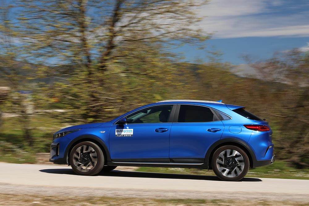 Κάτω από το καπό βρίσκεται ο 3κύλινδρος τούρμπο βενζινοκινητήρας άμεσου ψεκασμού 1.0 T-GDI της Kia, ο οποίος αποδίδει 115 ίππους στις 6.000 σ.α.λ. και 200 Nm ροπής σταθερά από τις 2.000 έως τις 3.000 σ.α.λ., συνδυασμένος με ήπιο υβριδικό σύστημα 48V. Αυτό το mild hybrid κινητήριο σύνολο δεν επιτρέπει ηλεκτρική κίνηση, ωστόσο προσφέρει άλλα, εξίσου σημαντικά οφέλη, όπως επιπλέον ώθηση κατά την εκκίνηση και τις επιταχύνσεις, ομαλότερη λειτουργία του Stop & Start και πολύ καλή οικονομία. Το αυτόματο κιβώτιο 7DCT διπλού συμπλέκτη είναι εξαιρετικά πολιτισμένο, αλλάζοντας σχέσεις γρήγορα, αθόρυβα και χωρίς δισταγμούς. Οι επιδόσεις που προσφέρει η συγκεκριμένη μονάδα είναι ικανοποιητικές, με την επιτάχυνση 0-100 χλμ./ώρα να ολοκληρώνεται σε 12,2 δλ., ενώ η τελική ταχύτητα φτάνει τα 182 χλμ./ώρα. Σε επίπεδο αίσθησης, ο κινητήρας αποδεικνύεται εξαιρετικά ήσυχος και ραφιναρισμένος σε σημείο που δεν αντιλαμβάνεται ο οδηγός ότι πρόκειται για τρικύλινδρο, ακόμα και όταν πιεστεί στις υψηλές στροφές. Όσον αφορά την κατανάλωση, το ήπιο υβριδικό σύστημα κάνει τη διαφορά. Στο μικτό κύκλο WLTP, το XCeed με 7DCT κιβώτιο καταναλώνει 6,0 λίτρα ανά 100 χλμ., με εκπομπές CO2 στα 136 γρ/χλμ. Σε πραγματικές συνθήκες, με μεικτή χρήση σε πόλη, επαρχιακό και εθνικό δίκτυο, η κατανάλωση που «είδαμε» κυμάνθηκε κοντά στα 7,0 λίτρα, κάτι που είναι πολύ λογικό για ένα οικογενειακό crossover με αυτόματο κιβώτιο και 115 ίππους.