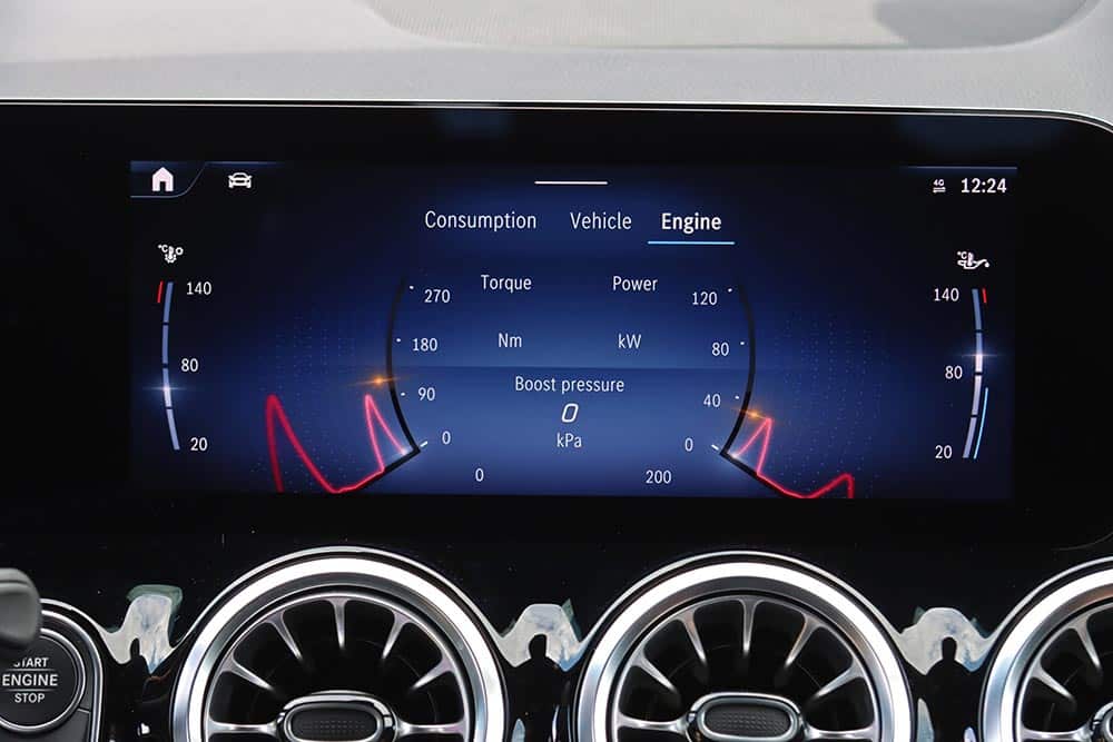 Όλες οι προηγούμενες λειτουργίες όπως Media, Phone, Vehicle κ.λπ. εξακολουθούν να είναι διαθέσιμες με το χειρισμό τους να γίνεται εύκολα μέσω της οθόνης αφής ή των πλήκτρων αφής στο νέου σχεδιασμού τιμόνι. Δίνεται η δυνατότητα ασύρματης σύνδεσης με smartphone μέσω Apple CarPlay ή Android Auto Wireless και για περαιτέρω συνδεσιμότητα, η GLA διαθέτει τώρα μια πρόσθετη θύρα USB-C και αυξημένη ισχύ φόρτισης USB (φωτιζόμενες όλες οι θύρες USB). Παράλληλα, ενεργοποιώντας τις online υπηρεσίες στην εφαρμογή Mercedes me, η έξυπνη φωνητική υποβοήθηση «Hey Mercedes» αποκτά περισσότερες ικανότητες διαλόγου και μάθησης. Το δύσχρηστο touchpad για την περιήγηση στο μενού που υπήρχε πριν αφαιρέθηκε και στη θέση του μπήκε μια ρηχή θήκη, ενώ στην κεντρική κονσόλα υπάρχουν πολλές ακόμα θήκες, όπως κάτω από το εμπρός υποβραχιόνιο.