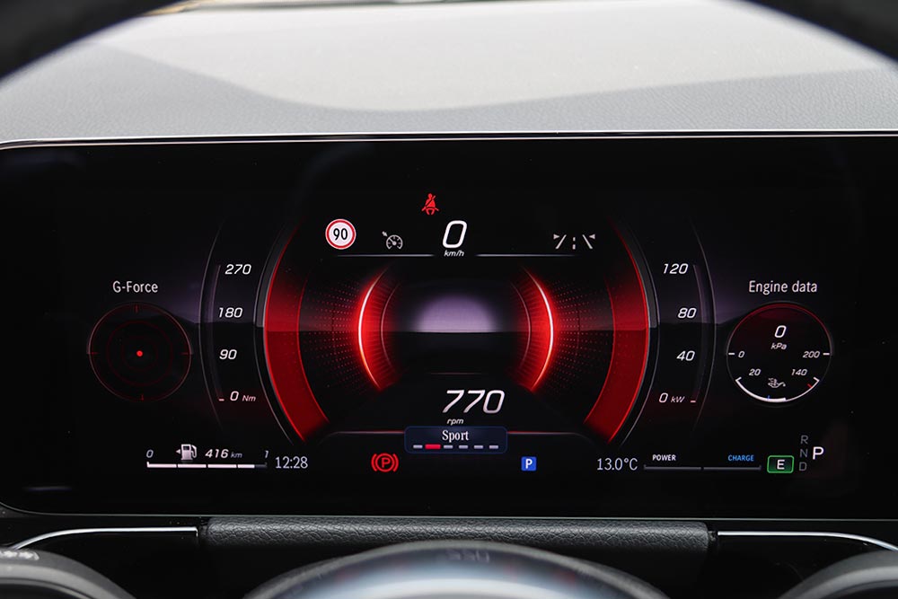 Στο εσωτερικό της ανανεωμένης Mercedes-Benz GLA οι πιο βασικές διαφορές εντοπίζονται στις οθόνες, στη βάση της κονσόλας και στο τιμόνι. Όπως αναφέραμε παραπάνω, στο βασικό της εξοπλισμό η GLA περιλαμβάνει ένα ενιαίο πάνελ που ενσωματώνει δύο οθόνες, μία 10,25 ιντσών στον πίνακα οργάνων και τη δεύτερη μεγάλη οθόνη πολυμέσων 10,25 ιντσών για το σύστημα πολυμέσων. Πρόκειται για το τελευταίας γενιάς MBUX με διαισθητική λειτουργία και προσαρμοζόμενο λογισμικό. Στο νέου σχεδιασμού στυλ οθόνης η επιλογή «Classic» παρέχει όλες τις απαραίτητες πληροφορίες για τον οδηγό, η «Sporty» εντυπωσιάζει με το κόκκινο στροφόμετρο και η επιλογή «Understated» παρουσιάζει μόνο το βασικό περιεχόμενο στις οθόνες. Σε συνδυασμό με τις τρεις λειτουργίες Navigation, Assistance και Services καθώς και τους 10 χρωματικούς συνδυασμούς του ατμοσφαιρικού φωτισμού, παρέχονται πολλές επιλογές εξατομίκευσης.