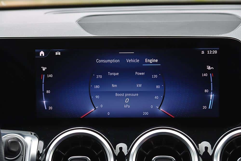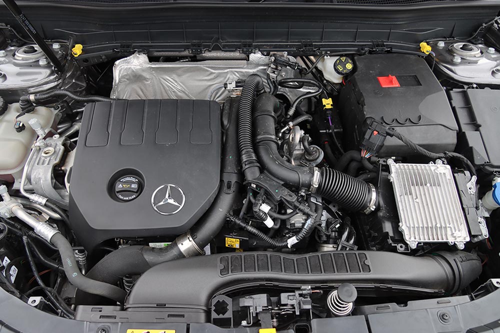 H GLB 200 τροφοδοτείται με τον τετρακύλινδρο turbo βενζινοκινητήρα των 1.33 λτ., ισχύος 163 ίππων και 270 Nm ροπής, συνδυασμένο με το στάνταρ αυτόματο κιβώτιο διπλού συμπλέκτη 7G-DCT. Στην πράξη το μηχανικό αυτό σύνολο παρουσιάζει γεμάτο τράβηγμα από τις πολύ χαμηλές στροφές, ανεβάζει γραμμικά ρυθμούς, επιταχύνει σβέλτα το αμάξωμα των 1,5 τόνων (0-100 χλμ./ώρα σε 9,3 δλ.) και έχει την απαιτούμενη δύναμη. Ωστόσο, όταν το μοτέρ ανεβάζει πιο ψηλά στροφές, τότε ο θόρυβος που παράγει γίνεται αρκετά αισθητός στο εσωτερικό του αυτοκινήτου, ενώ η λειτουργία του παρουσιάζει μια τραχύτητα. Όμως σε κανονικούς ρυθμούς ταξιδιού δεν ενοχλεί, αφού η 7η ταχύτητα κρατά χαμηλά τις στροφές του μοτέρ. Το 7DCT είναι σε κάθε περίπτωση άμεσο και ομαλό στη λειτουργία του, συν του ότι ο οδηγός έχει στη διάθεσή του τα paddles πίσω από το τιμόνι για χειροκίνητες αλλαγές και καλύτερο έλεγχο σε μια διαδρομή με στροφές για παράδειγμα. Όσον αφορά την κατανάλωση, στη δοκιμή βρέθηκε με ένα μέσο όρο στα 9 λτ./100 χλμ. Σε ανοιχτούς δρόμους με κανονικές ταχύτητες πέφτει στα 7,5 λτ./100 χλμ. ενώ με λίγη παραπάνω πίεση σε μια ορεινή διαδρομή ή στην πόλη φτάνει ή και ξεπερνάει τα 11 λτ./100 χλμ.