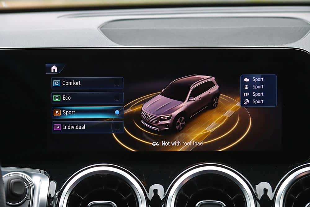Η GLB 200 βρίσκεται στο στοιχείο της στις εθνικές οδούς, όπου διανύει με ευκολία πολλά χιλιόμετρα, χωρίς ο οδηγός και οι επιβάτες να τα αντιλαμβάνονται, ανεξαρτήτως του νούμερου που δείχνει το κοντέρ. Παράλληλα δεν θα φέρει τον οδηγό της σε δύσκολη θέση σε πιο «σφιχτές» επαρχιακές – ορεινές διαδρομές με στροφές, όπου είναι σε θέση να εξαντλήσει πλήρως τα αποθέματα ισχύος του κινητήρα και να κινηθεί σβέλτα, με ασφάλεια και έχοντας πάντα τον έλεγχο. Σίγουρα δεν θα πάρει κανείς την GLB 200 για να φορτώνει την οικογένεια και να κυνηγάει τις στροφές, όμως το πληθωρικό SUV εμπνέει σιγουριά και είναι προβλέψιμο, ακόμα και όταν σηκωθεί ο πίσω τροχός σε μια καμπή με γεμάτο γκάζι και το τιμόνι υπό έντονη γωνία. Επίσης, το παραμετρικό σύστημα διεύθυνσης μαζί με την εξτρά ρυθμιζόμενη ανάρτηση, τα δυνατά φρένα και τα ηλεκτρονικά συστήματα ελέγχου της δυναμικής συμπεριφοράς, ενισχύουν την αίσθηση και το πάτημα. Μαζί με αυτά προσθέστε και τις επιλογές Comfort, Sport, Individual και Eco του Dynamic Select, για περισσότερη άνεση ή πιο σπορ αίσθηση.