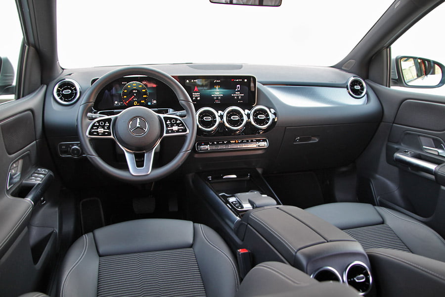 Το εσωτερικό της Β 200 εμφανίζει διαφορές στο σχεδιασμό από εκείνο της νέας A-Class. Ωστόσο, το κεντρικό τμήμα του ταμπλό με τις δύο ψηφιακές οθόνες του συστήματος MBUX (στάνταρ είναι 7 ιντσών έκαστη και προαιρετικά έως 10,25 ιντσών) και τα επιμέρους στοιχεία είναι ίδιο. Σε επίπεδο κατασκευής, τα υλικά είναι ποιοτικά και μαλακά, με πολύ καλή συναρμογή η οποία πείθει ότι θα αντέξει στο χρόνο.