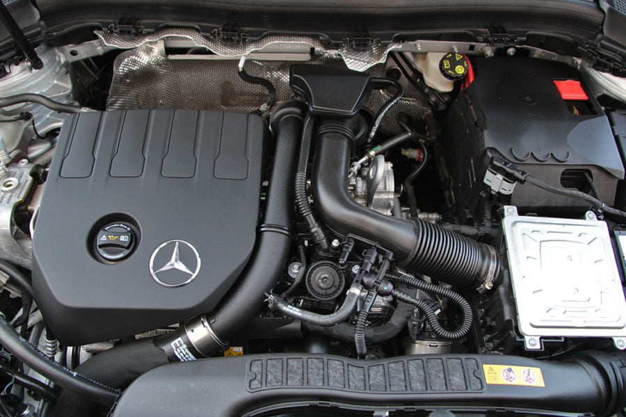 Η καρδιά της Β 200 είναι ο αλουμινένιος Μ282 κινητήρας, με χωρητικότητα 1.332 κ.εκ., ισχύ 163 ίππων και ροπή 250 Nm. Μηχανολογικό highlight, το σύστημα απενεργοποίησης κυλίνδρων (Cylinder Cutoff) που ενεργοποιείται μεταξύ 1.250 -3.800 σ.α.λ. ανάλογα με τις απαιτήσεις ισχύος. Στη πράξη το εν λόγω μηχανικό σύνολο διακρίνεται με τον τρόπο λειτουργίας του, όμως στις υψηλές στροφές έχει αρκετό θόρυβο. Η δύναμη «απλώνεται» σε όλο το φάσμα στροφών, όπου με το καλό σε λειτουργία αυτόματο κιβώτιο διπλού συμπλέκτη 7G-DCT ο οδηγός έχει δύναμη στο δεξί του πόδι ανά πάσα στιγμή. Έτσι κατορθώνει να προσφέρει γρήγορες επιδόσεις (0-100 χλμ./ώρα σε 8,2 δλ., τελική ταχύτητα 223 χλμ./ώρα). Η κατανάλωση είναι λογική, αφού κατά τη διάρκεια της δοκιμής βρέθηκε στα 8,0 λτ./100 χλμ.