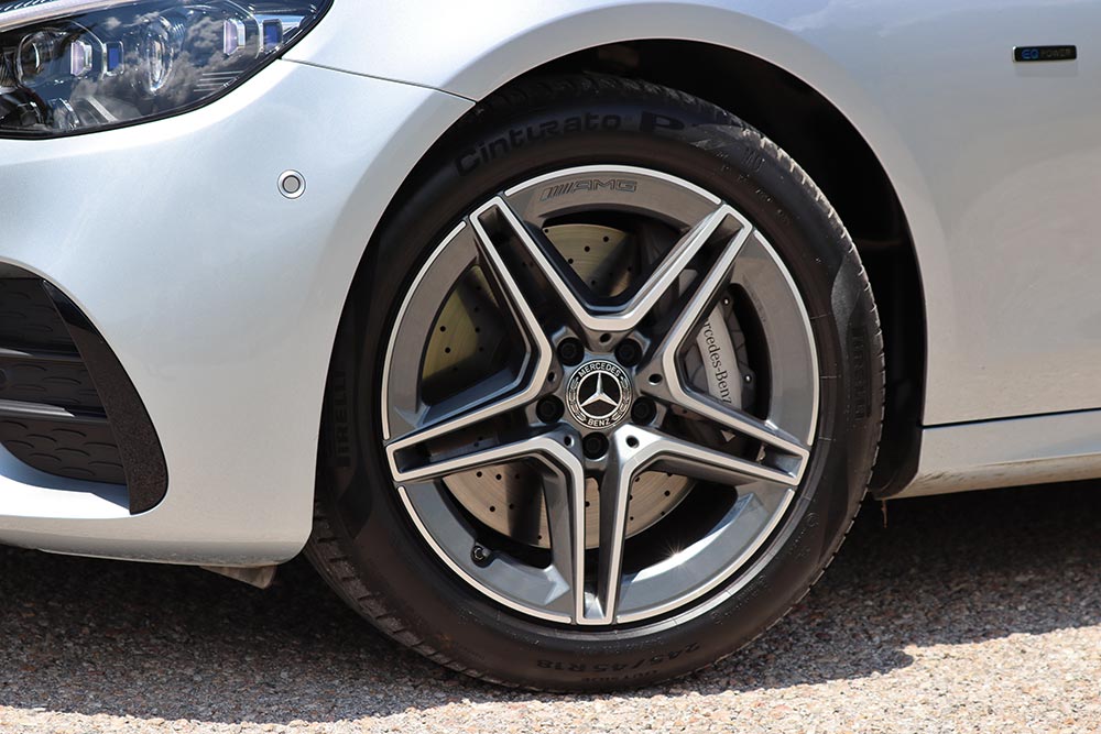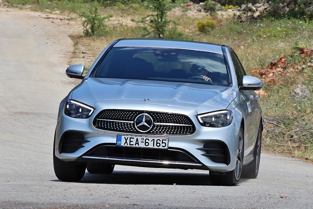 Με την συγκεκριμένη E-Class μπορείτε εφόσον το επιτρέπουν οι συνθήκες, να κινηθείτε πολύ γρήγορα και με ασφάλεια, ή εξαιρετικά οικονομικά και χωρίς ρύπους. Βλέπετε η «καρδιά» της E 300 e αποτελείται από τον γνώριμο 2λιτρο κινητήρα βενζίνης με ισχύ 211 ίππων και 350 Nm ροπής και έναν ηλεκτροκινητήρα 122 ίππων και 440 Nm ροπής, που έχει τοποθετηθεί στο κιβώτιο και αντλεί ενέργεια από μια μπαταρία 13,5 kWh. Συνολικά ο χειριστής της E 300 e έχει στο δεξί του πόδι 320 ίππους, καθώς και τη θηριώδη ροπή των 700 Nm. Ο οδηγός έχει τη δυνατότητα να κινηθεί κι αμιγώς ηλεκτρικά για έως και 52 χλμ. Η μπαταρία πέρα από την ανάκτηση ενέργειας φορτίζει κι από εξωτερική πηγή σε πέντε ώρες σε παροχή 2,3 kW, σε 2,75 ώρες σε 3,7 kW και σε μόλις 1,5 ώρες σε 7,4 kW. Στον εξοπλισμό περιλαμβάνονται καλώδια τόσο για οικιακή πρίζα όσο και για Wallbox. Οι επιδόσεις που προσφέρει η E 300 e θυμίζουν αυτές ενός «καυτού» hatchback, μιας και τα 100 χλμ./ώρα ο οδηγός θα τα δει σε 5,8 δλ. και με την τελική ταχύτητα να φτάνει τα 250 χλμ./ώρα! Και το ακόμα καλύτερο; Όλα αυτά γίνονται σύμφωνα με τη Mercedes με μέση κατανάλωση 1,5 λτ./100 χλμ. και με εκπομπές C02 μόλις 34 γρ./χλμ.!, όσο η μπαταρία είναι φορτισμένη. Ακόμα όμως και όταν αδειάσει και λειτουργεί σαν υβριδικό, το ρεαλιστικό νούμερο της κατανάλωσης αγγίζει τα 7 λτ./100 χλμ., που και πάλι αναλογικά με τα χαρακτηριστικά του αυτοκινήτου είναι λίγα.
