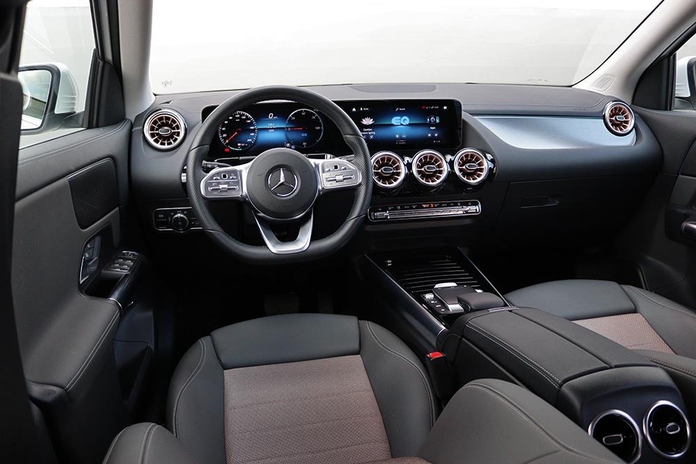 Όσοι έχετε τύχει να βρεθείτε στο εσωτερικό της Mercedes GLA και μπείτε και σε αυτό της EQA, θα δείτε πως είναι πανομοιότυπα σε ότι έχει να κάνει με το σχεδιασμό τους, ενώ και τα δυο βρίθουν πολυτέλειας. Οι κυριότερες αλλαγές εντοπίζονται στις επενδύσεις, στα γραφικά και στα σήματα του συστήματος πολυμέσων. Και στην ηλεκτρική Mercedes EQA οι οθόνες, τόσο του infotainment, όσο και του ψηφιακού πίνακα οργάνων θα κερδίσουν την προσοχή σας. Στη βασική έκδοση αμφότερες είναι στις 7 ίντσες, αλλά στον προαιρετικό εξοπλισμό είναι διαθέσιμες μεγαλύτερης διάστασης, 10,25 ιντσών εκάστη, όπως ακριβώς και στο μοντέλο της δοκιμής μας.