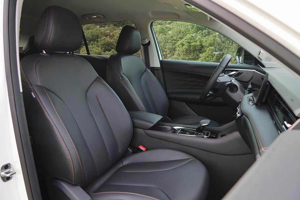 Το ίδιο εντυπωσιακό εμφανίζεται και στα ενδότερα το MG HS. Tα πλαστικά δεν φαίνονται μόνο καλά, αλλά είναι κιόλας. Μαλακά, πολύ καλοσυναρμολογημένα, με προσοχή στη λεπτομέρεια και παρουσία παντού, ακόμα και στα λιγότερο φανερά σημεία. Το MG θρέφει την αφή τόσο χαμηλά στην κεντρική κονσόλα, όσο και στο εσωτερικό των θυρών, εμπρός-πίσω μάλιστα! Πινελιές που φτιάχνουν γενικότερα το image της εταιρίας, καθώς δείχνει ότι θέλει να έχει στα «ώπα-ώπα» τους επιβάτες. Στο ίδιο πλαίσιο και το ενιαίο πάνελ με τις δίδυμες οθόνες των 12,3 ιντσών, που κυριαρχεί στο πάνω μέρος του ταμπλό. Αυτό ούτως ή άλλως ισχύει, λόγω χώρων. Το HS καθίζει με όλη τους την άνεση 5 ενήλικες, δεν περιορίζει πουθενά πόδια, κεφάλια ή ώμους, βάζει τον οδηγό σε μια σωστή θέση εποπτείας, προσφέροντας παράλληλα 441 λίτρα για τις αποσκευές. Χωρητικότητα που είναι μεν επαρκής, αλλά μικρότερη από άλλων μεσαίων SUV. Κάποια ανώδυνα «φάουλ» τα παρατηρείς, οι σχετικά λίγες θέσεις για μικροαντικείμενα και η αργοπορημένη απόκριση του infotainment στις εντολές από τα κουμπιά (μέσω της οθόνης «ακούει» καλύτερα), αλλά δεν αρκούν να χαλάσουν τη γενικότερη, πολύ καλή εντύπωση.