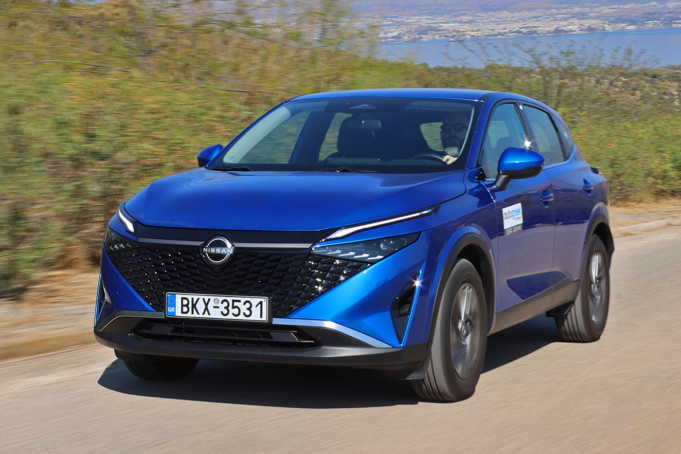 Η ποιότητα κύλισης μιμείται την εικόνα του εσωτερικού και σε βάζει στον πειρασμό του premium χαρακτηρισμού, συνοδευόμενη από λίγους εξωγενείς θορύβους. Ένα σεβαστό θρόισμα θα ακούσεις μόνο από τους καθρέπτες, αλλά στα πολλά χλμ./ώρα. Ούτε η χροιά του μοτέρ παρεισφρέει στην καμπίνα, πέρα από στιγμές που θα πατήσεις τέρμα το γκάζι. Και πάλι, όμως, σε ταχύτητες αυτοκινητοδρόμου (ή πάνω από αυτές) περισσότερο τη «σύγκρουση» των αεροδυναμικών ριπών στους καθρέπτες θα ακούσεις, παρά το μοτέρ ή τα λάστιχα. Εδώ να κάνουμε μια αναφορά στην ολόσωστη διάσταση των τροχών (215/65 R17), μακριά από τις υπερβολές των 19άρων ή 20άρων ζαντών (αμφότερες διαθέσιμες στις πλουσιότερες εκδόσεις). Όταν αρχίσουν οι στροφές, συνεχίζεις να μνημονεύεις τη ρύθμιση της ανάρτησης. Η ανταπόκριση του μπροστινού είναι άμεση, με τις κλίσεις να διατηρούνται σε απολύτως λογικά επίπεδα. Η ουρά δεν αρέσκεται ιδιαίτερα σε παιχνιδίσματα, αλλά δεν βάζει και φρένο στην πορεία του αυτοκινήτου υπό την έννοια ότι δεν προκαλεί την επέμβαση του ESP. Nismo δεν είναι, αλλά μια χαρά ρυθμό πιάνει και διατηρεί στο βουνό. Εκτός δρόμου και σε χωματόδρομους ειδικότερα παρά εύκολα, χάρη και στην επαρκέστατη απόσταση του αμαξώματος από το έδαφος των 175 χιλιοστών.