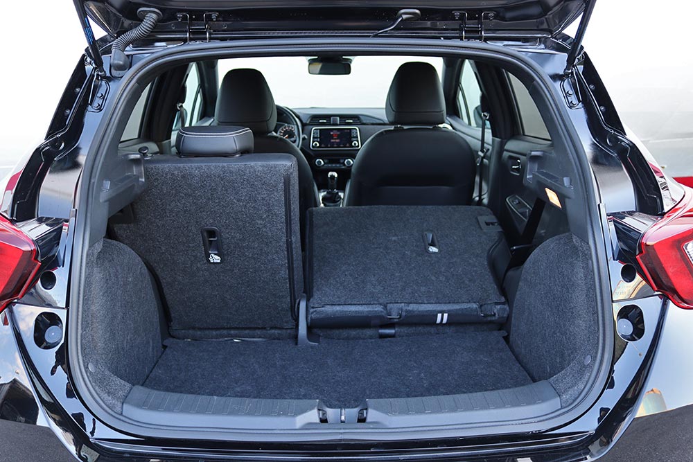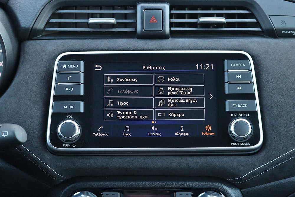 Η νέα οθόνη των 7 ιντσών, που ήρθε με το περσινό facelift, διακρίνεται για την ευχρηστία της, προσφέροντας απρόσκοπτο έλεγχο στις λειτουργίες του συστήματος πολυμέσων NissanConnect. Εξίσου θετικές εντυπώσεις αφήνουν οι χώροι, που είναι πέρα από ικανοποιητικοί για τέσσερις επιβάτες, ενώ αυτός των αποσκευών τα πηγαίνει ακόμα καλύτερα. Τα 300 λίτρα συνιστούν πολύ καλή τιμή για τα δεδομένα της κατηγορίας, προσφέροντας παράλληλα πλήρως εκμεταλλεύσιμο σχήμα και επαρκές βάθος. Λίγο μεγαλύτερο άνοιγμα, πάντως, θα το ήθελες.