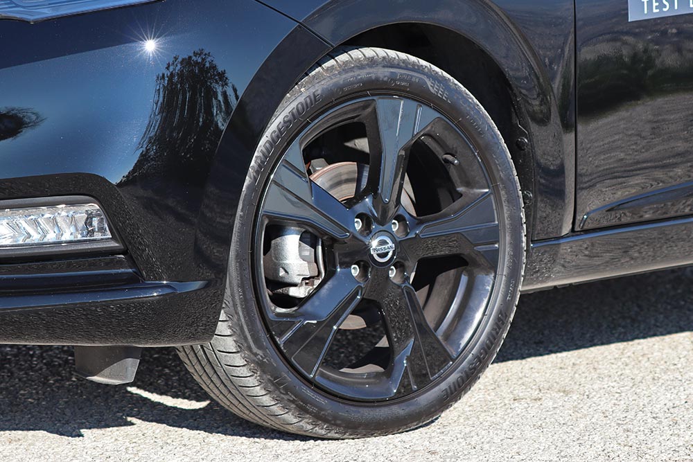 Το N-Sport κανονικά δεν δυσκολεύεσαι να το ξεχωρίσεις από τα άλλα Micra, χάρις στο μαύρο χρώμα που καλύπτει μεγαλύτερο μέρος της μάσκας, τα δυο σκέλη χαμηλά στους προφυλακτήρες, τα πλαστικά προστατευτικά στο πλάι, τους καθρέπτες και φυσικά τις ζάντες. Από όλα αυτά, μόνο οι 17άρες Βlack Perso φαίνονται στο μαύρο χρώμα της δοκιμής, με τις υπόλοιπες πινελιές να ζητούν διαφορετική απόχρωση στο αμάξωμα ώστε να δημιουργήσουν την απαραίτητη αντίθεση. Ακόμα κι έτσι, το total black παρουσιαστικό πηγαίνει αρκετά στο Micra. Στη συγκεκριμένη περίπτωση, πέρα από τις ζάντες, ειδοποιός διαφορά του N-Sport είναι το ανάλογο σήμα στην πίσω πόρτα.