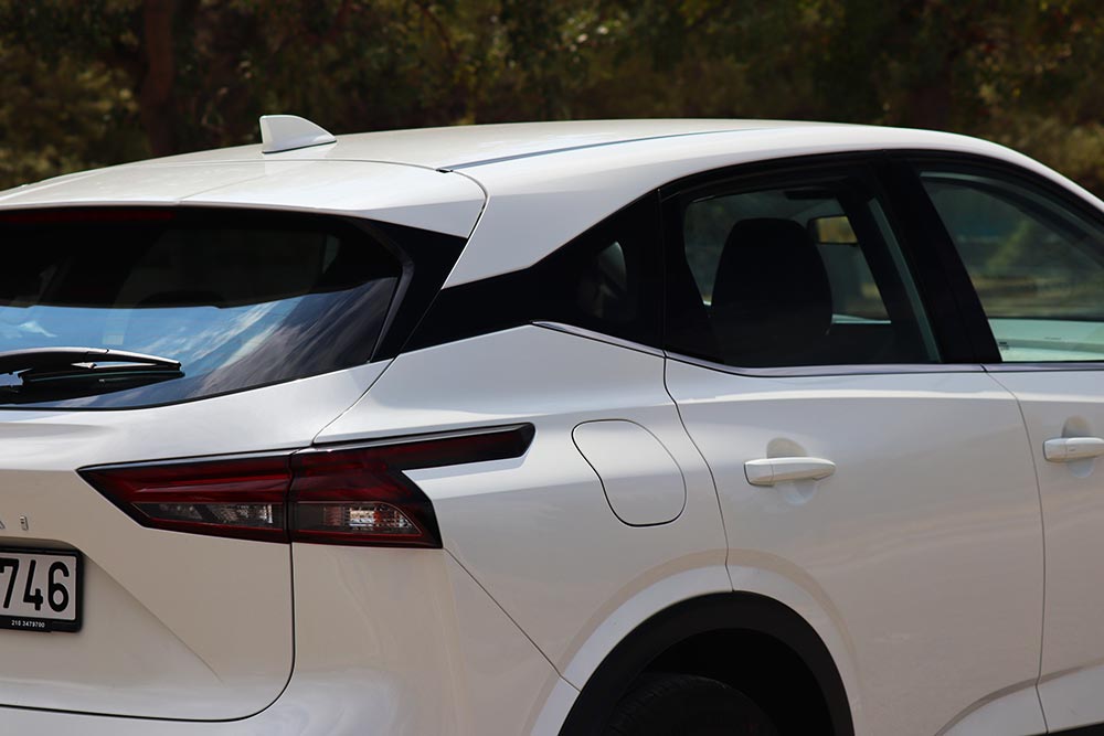 Εξωτερικά το νέο Qashqai παρόλο που άλλαξε σημαντικά, διατήρησε το στυλ του προγενέστερου. Όπως και το πρώτης γενιάς, προέρχεται από το European Design Studio της Nissan, στο Λονδίνο. Το ολοκαίνουργιο C-SUV της Nissan εμφανίζει πιο δυναμικό παρουσιαστικό και ενστερνίζεται τη νέα σχεδιαστική ταυτότητα που υιοθετείται στα μεγαλύτερα SUV της μάρκας. Στο εμπρός άκρο του κυριαρχούν η μεγάλη χρωμιωμένη μάσκα Nissan V-Motion, η οποία πλαισιώνεται από τους λεπτούς προβολείς και τα αιχμηρά φώτα ημέρας, δημιουργώντας ένα σχήμα τύπου μπούμερανγκ. Από το πλάι το Qashqai χαρακτηρίζεται για το σφηνοειδές του προφίλ και τα νεύρα που διατρέχουν όλο το αμάξωμα. Μυώδες είναι και το πίσω τμήμα με τα τριγωνικά φανάρια, το κεκλιμένο παρμπρίζ και τη μεγάλη αεροτομή στο τελείωμα της οροφής. Το πιο επιβλητικό ανάστημα του νέου Qashqai στο δρόμο τονίζουν με τη σειρά τους και οι μεγαλύτερες διαστάσεις. Το μήκος έχει αυξηθεί κατά 35 χλστ. (4.425), το πλάτος κατά 32 χλστ. (1.835), το ύψος κατά 25 χλστ. (1.625) και το μεταξόνιο μεγάλωσε 20 χλστ. (2.665).