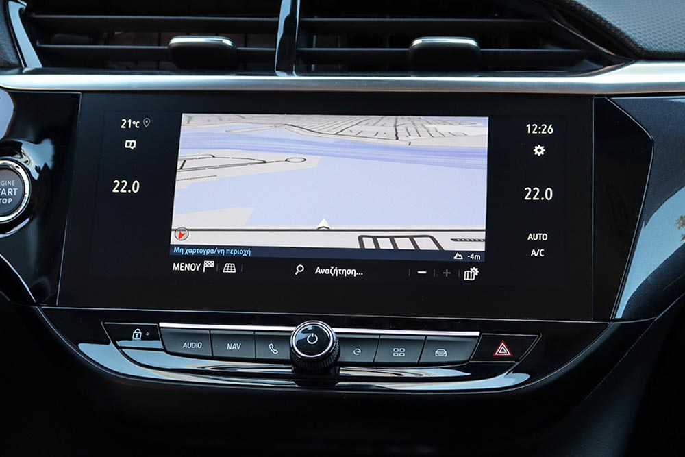 Κατά κύριο λόγο το εσωτερικό του ηλεκτρικού Corsa-e είναι ίδιο με αυτό που υπάρχει και στις εκδόσεις με τους κινητήρες εσωτερικής καύσης. Οι κυριότερες διαφορές εντοπίζονται στις ενημερωτικές ενδείξεις για τη λειτουργία του ηλεκτρικού συστήματος στην οθόνη του infotainment και του ψηφιακού πίνακα οργάνων. Από εκεί κι έπειτα τα υπόλοιπα είναι όπως ακριβώς τα γνωρίζουμε κι από τις εκδόσεις βενζίνης ή πετρελαίου. Τα υλικά που έχουν χρησιμοποιηθεί ικανοποιούν (μαλακό υλικό στο πάνω μέρος του ταμπλό), όπως κι η συναρμογή, ενώ ότι χρειάζεται ο οδηγός το έχει σε ακτίνα βολής. Τα φυσικά κουμπιά κατά πλειοψηφία έχουν αντικατασταθεί από το σύστημα πολυμέσων, με τις περισσότερες ρυθμίσεις να επιτελούνται από την οθόνη αφής. Αυτή μάλιστα είναι κι ελαφρώς στραμμένη προς τον οδηγό, ενισχύοντας τον οδηγοκεντρικό χαρακτήρα που θέλει να προσδώσει η Opel στο ηλεκτρικό της. Επιπλέον πληροφόρηση λαμβάνει ο χειριστής του Corsa από τον ψηφιακό πίνακα οργάνων που έχει όλες τις απαραίτητες ενδείξεις για την αυτονομία της μπαταρίας, την ανάκτηση ή την κατανάλωση ενέργειας και καθετί που σχετίζεται με την ηλεκτρική λειτουργία του αυτοκινήτου. Σε επίπεδο πρακτικότητας δεν θα έχετε κάποιο παράπονο, αφού υπάρχουν αρκετές θήκες για τα πράγματά σας, ενώ υπάρχει και δυνατότητα ασύρματης φόρτισης κινητού τηλεφώνου. Όσον αφορά τους χώρους, πίσω επιβάτες κανονικού ύψους δεν θα αντιμετωπίσουν πρόβλημα, όμως αν πρόκειται για άτομα ύψους 1,80 και άνω θα γίνουν παραχωρήσεις τόσο για τα γόνατα, όσο κυρίως το κεφάλι. Επίσης, το άνοιγμα των θυρών είναι μικρό και δυσχεραίνει την είσοδο και έξοδο από το πίσω κάθισμα. Συγκριτικά με τα «απλά» Corsa όμως, ο χώρος αποσκευών έχει μειωθεί κατά 42 λίτρα λόγω των μπαταριών, αγγίζοντας τα 267 λίτρα.
