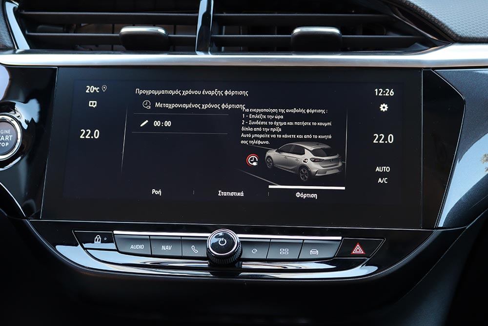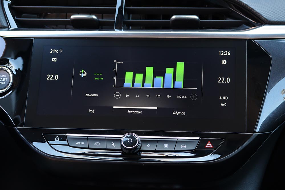 Εκεί που πρέπει να σταθούμε λίγο παραπάνω όμως είναι η δουλειά που έχει κάνει η Opel στο στήσιμο του αυτοκινήτου. Αρχικά το Corsa-e βασίζεται στην αρθρωτή πλατφόρμα Common Modular Platform (CMP) του ομίλου PSA, διαθέτει ένα ενισχυμένο και πιο άκαμπτο μπροστινό υποπλαίσιο, με το κέντρο βάρους να έχει χαμηλώσει κατά 60 χλστ. Επιπλέον η κρεμαγιέρα έχει σεταριστεί διαφορετικά, ενώ η ανάρτηση έσφιξε ελαφρώς για να μπορέσει να διαχειριστεί καλύτερα τα επιπλέον 345 κιλά της μπαταρίας. Κάτι που έχει σημαντικό αντίκτυπο όταν το Corsa-e πρέπει να περάσει πάνω από εγκάρσιες ανωμαλίες του οδοστρώματος. Όμως προσφέρει άφθονη πρόσφυση ακόμα και σε έντονους ρυθμούς οδήγησης, όπου εκεί θα εκτιμήσετε και την πολύ καλή πληροφόρηση από το τιμόνι. Κακά τα ψέματα, όμως το Corsa-e δεν φτιάχτηκε για κυνήγι του χρονομέτρου, αλλά για άνετες κι οικολογικές μετακινήσεις. Πεδίο δόξης λαμπρό το αστικό περιβάλλον, αλλά δεν θα πει όχι αν πρέπει να ταξιδέψει κι έξω από αυτό. Με λογική χρήση του δεξιού πεντάλ, η μέση κατανάλωση μπορεί να διατηρηθεί χαμηλά, (εμείς είδαμε 17,8 kWh/100 χλμ. στο trip computer, με την Opel να ανακοινώνει 16,5 kWh/ 100 χλμ.) κι έτσι να μην αναγκάζεστε να «πριζώνετε» συχνά το Corsa-e.