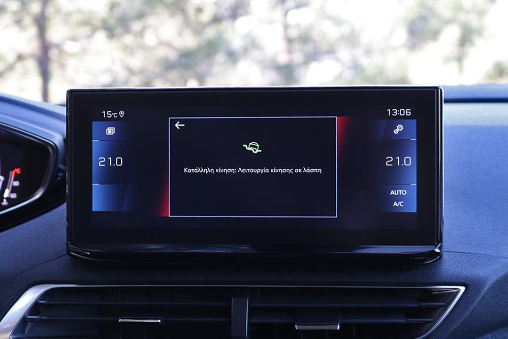 Αίσθημα που παραμένει και στο επαρχιακό δίκτυο, ακόμα κι όταν ο οδηγός αρχίσει να πιέζει από στροφή σε στροφή. Οι κλίσεις είναι λογικές για το χαρακτήρα, αλλά και το ύψος του αυτοκινήτου από το έδαφος (219 χλστ. είναι αυτά), με τα περιθώρια πρόσφυσης να είναι άφθονα. Στο όριο η υποστροφή θα δηλώσει παρούσα, ανοίγοντας ελαφρώς την τροχιά του εμπρόσθιου άξονα, αντίδραση που εξαλείφεται εύκολα, με ένα «άσε» στο γκάζι. Η ουρά μένει βιδωμένη στην θέση της, χωρίς απότομες αντιδράσεις. Είναι πάντως εντυπωσιακό ότι ένα οικογενειακό SUV με αυτό τον όγκο μπορεί και στρίβει με περίσσια ασφάλεια, ακόμα και σε πολύ στενούς φιδίσιους δρόμους. Μεγάλη απόλαυση όμως θα σας προσφέρει το Peugeot 3008 όταν θα θελήσετε να κινηθείτε εκτός ασφάλτου. Εκεί το αναβαθμισμένο Advanced Grip Control που διαχειρίζεται μέσω του συστήματος ευστάθειας την πρόσφυση των εμπρός τροχών, καταφέρνει να σας οδηγήσει με άνεση κι ασφάλεια και σε διαδρομές που τελειώνει η άσφαλτος, μιας και διαθέτει τέσσερα προγράμματα οδήγησης (άσφαλτος, άμμος, χιόνι και λάσπη). Το εν λόγω σύστημα, μόλις διαγνώσει ότι ο ένας τροχός που έχει χάσει πρόσφυση γυρίζει άσκοπα (όπως στα κλασικά 2κίνητα), αμέσως στέλνει δύναμη στον διπλανό τροχό που πατάει καλύτερα, έτσι ώστε το αυτοκίνητο να ξεκολλήσει.