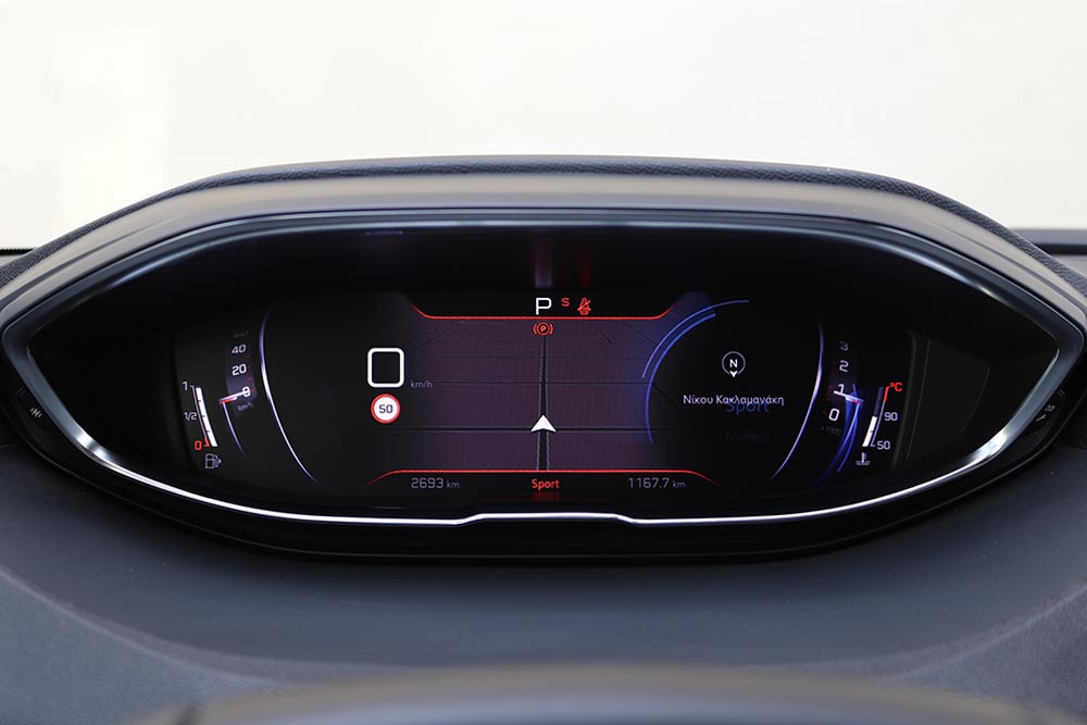 Επιπλέον στη διάθεση του οδηγού υπάρχουν και τρία διαφορετικά προγράμματα λειτουργίας, Eco, Normal και Sport. Το Eco εστιάζει στην οικονομία καυσίμου, ενώ επιλέγοντας το Sport, το 3008 αποκτά ένα ελαφρώς πιο σβέλτο χαρακτήρα. Ο πίνακας οργάνων κοκκινίζει, με την απόκριση του γκαζιού να είναι πιο άμεση και το τιμόνι να βαραίνει ελαφρώς. Βέβαια αλλάζει κι η συμπεριφορά του κιβωτίου, με τις αλλαγές να είναι πιο άμεσες, ενώ η εκάστοτε σχέση κρατάει λίγο πιο ψηλά τις στροφές του κινητήρα πριν περάσει στην επόμενη. Στον τομέα των επιδόσεων τώρα, τα 0-100 χλμ./ώρα έρχονται σε 9,7 δλ., με την τελική να αγγίζει τα 188 χλμ./ώρα. Η κατανάλωση κατά WLTP σύμφωνα με τη Peugeot βρίσκεται στα 6,5 λτ./100 χλμ., ενώ εμείς κατά τη δοκιμή μας είδαμε στο trip computer 7,8 λτ./100 χλμ. με τις εκπομπές ρύπων να βρίσκονται στα 146 γρ./χλμ. Δηλαδή ετήσια τέλη κυκλοφορίας 102 ευρώ.