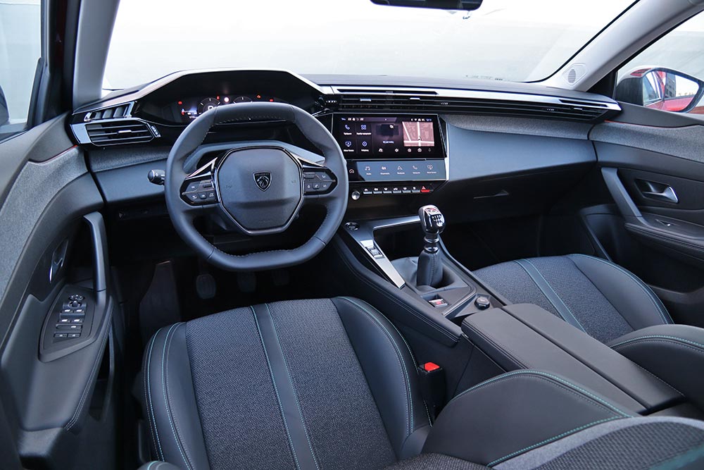 Η καλαισθησία που αποκομίζεις από την εξωτερική εμφάνιση του 308, συνεχίζεται και στην καμπίνα, που ενστερνίζεται την i-cockpit λογική της μάρκας. Από την πρώτη επαφή γίνεται αντιληπτό πως η Peugeot έθεσε ως προτεραιότητα τη συνύπαρξη υψηλής τεχνολογίας, ποιότητας και άνεσης. Ο σχεδιασμός είναι μοντέρνος στο ταμπλό, το οποίο απαρτίζεται από μαλακά υλικά στα ανώτερα τμήματα και σκληρά στα κατώτερα. Το «κόκπιτ» ενσωματώνει αρχιτεκτονική δυο επιπέδων με έντονες γωνίες, όπου πάνω συναντάμε τους αεραγωγούς του συστήματος κλιματισμού, αλλά και τη φάσα που καλύπτει το ταμπλό έως και τις πόρτες. Ακριβώς από κάτω υπάρχει η ευανάγνωστη και με γραφικά υψηλής ευκρίνειας, 10ίντση οθόνη του infotainment.