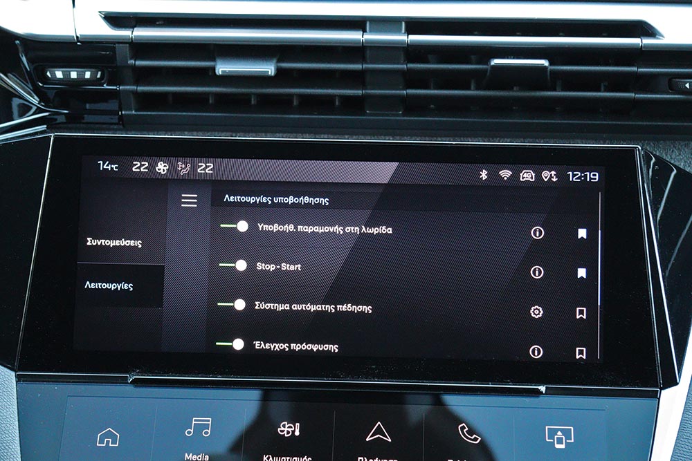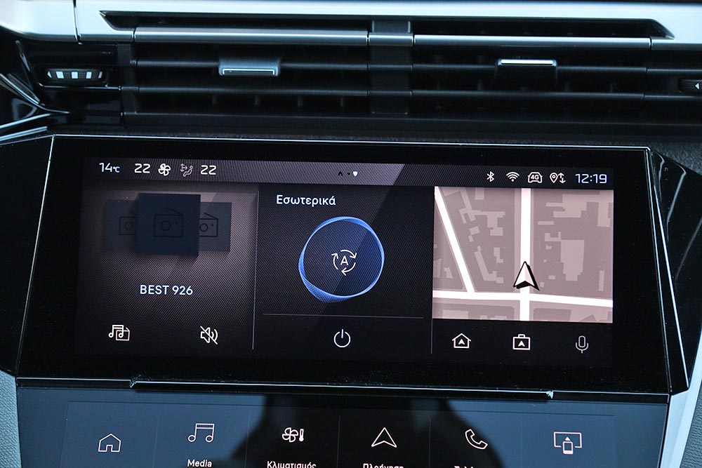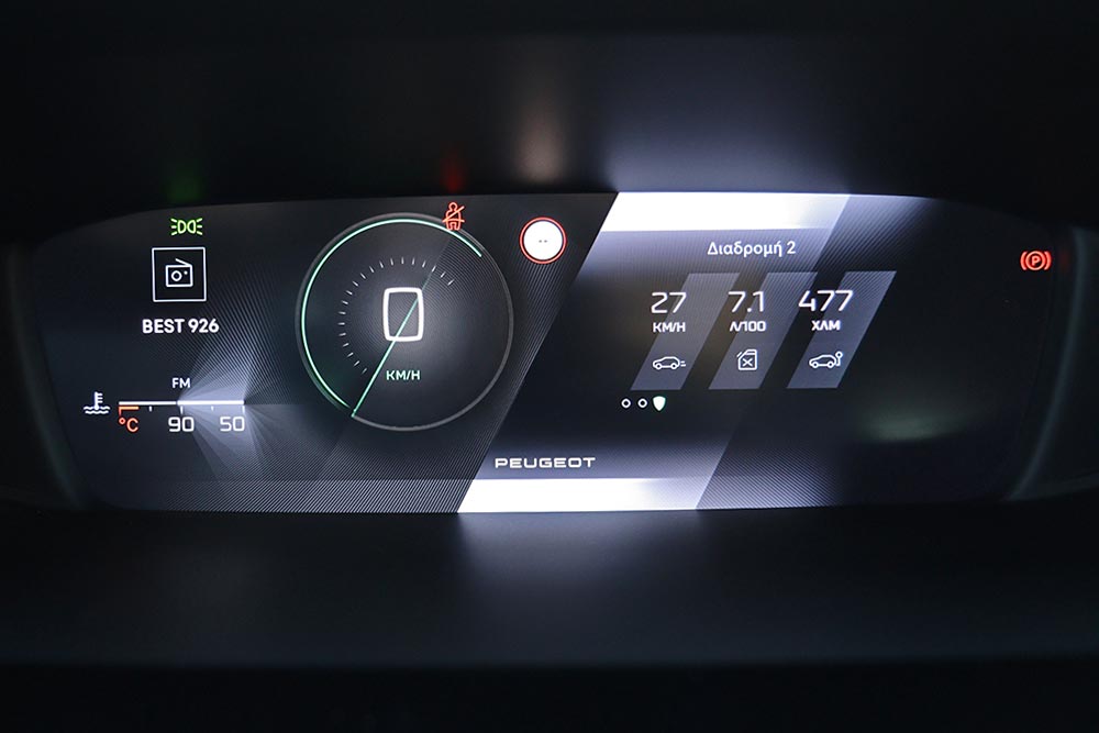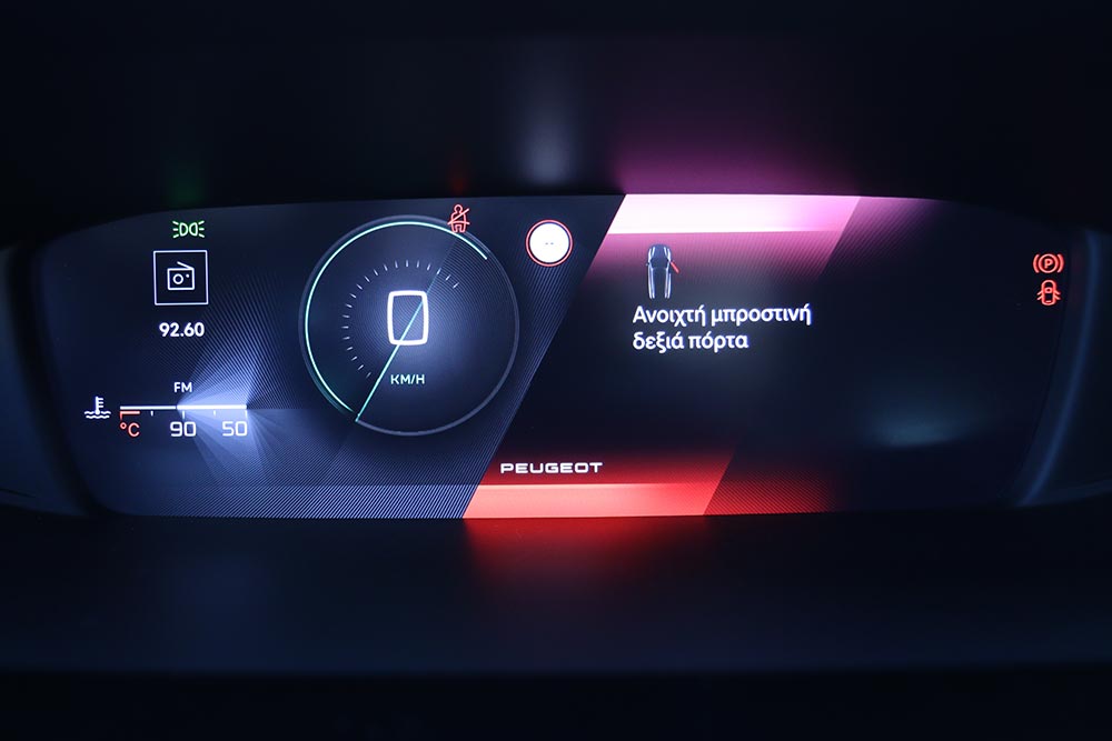 Εντυπωσιακά είναι όμως και τα πλήκτρα αφής που λειτουργούν ως συντομεύσεις του συστήματος και απογειώνουν την τεχνολογική εμπειρία του χρήστη. Υπάρχουν βέβαια και φυσικοί διακόπτες για άμεση πρόσβαση στις βασικές λειτουργίες του infotainment. Ο οδηγός θα κάτσει άνετα στη θέση του, θα τη ρυθμίσει ποικιλοτρόπως και έχει μπροστά του το μικρής διαμέτρου τιμόνι. Όμως και σε αυτό το Peugeot, το τιμόνι κρύβει ένα μεγάλο μέρος του πίνακα οργάνων και είναι κάτι που σίγουρα ενοχλεί. Παρά αυτό το μειονέκτημα, ο οδηγός γενικά κάθεται καλά, έχοντας σε απόσταση βολής ότι χειριστήριο χρειάζεται.