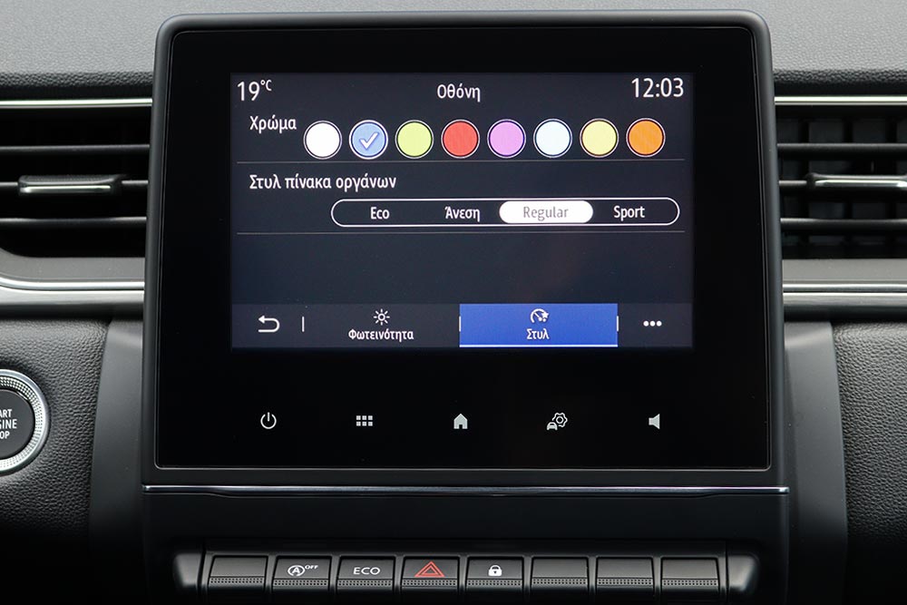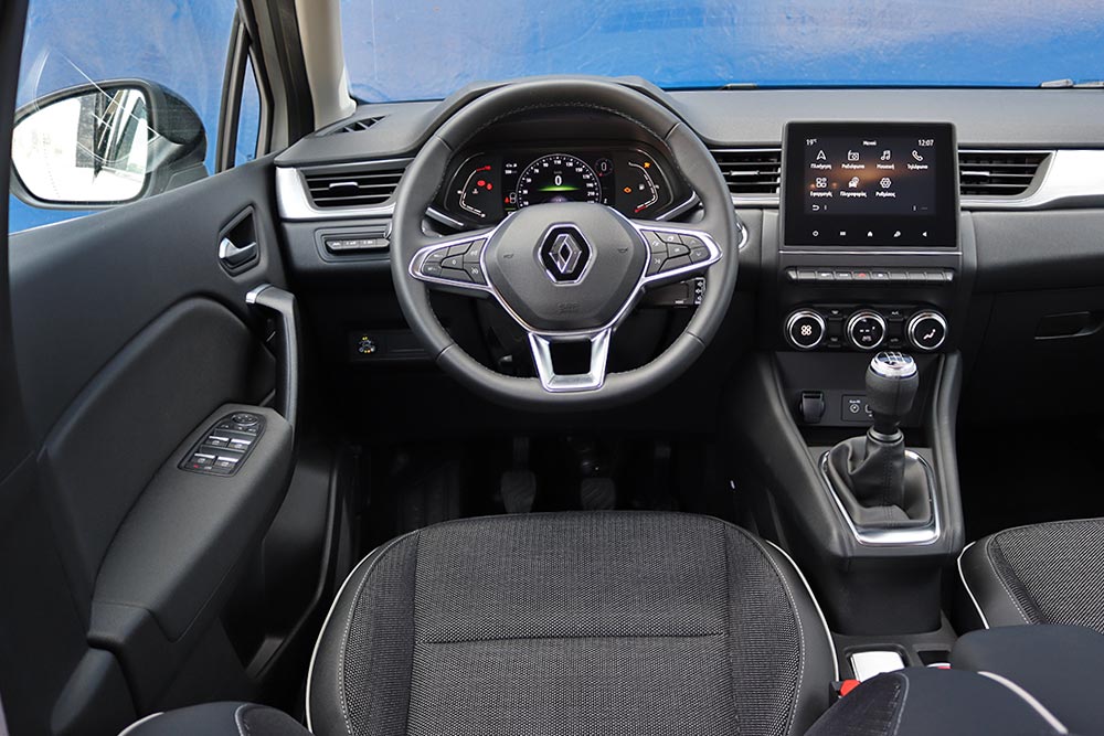 Με την πρώτη ματιά ούτε στην καμπίνα του Captur θα βρείτε διαφορές συγκριτικά με τις «απλές» εκδόσεις βενζίνης, εκτός από το κουμπί επιλογής καυσίμου στην αριστερή πλευρά του τιμονιού και την ένδειξη LPG (όταν είναι ενεργοποιημένο) στον πίνακα οργάνων. Εκεί ενσωματώνεται και trip computer που αφορά και τα δύο καύσιμα του γαλλικού SUV. Από εκεί κι έπειτα όλα είναι όπως ακριβώς τα γνωρίζουμε από τα υπόλοιπα Captur. Όπερ μεθερμηνευόμενων εστί, πως έχουμε να κάνουμε με ένα εσωτερικό αισθητά αναβαθμισμένο συγκριτικά με το πρόσφατο παρελθόν. Σχεδιαστικά κυριαρχούν οι ίσιες γραμμές στο ταμπλό και η κάθετη οθόνη αφής του συστήματος πολυμέσων συστήματος infotainment των 7 ή 9,3 ιντσών, αναλόγως εξοπλιστικής έκδοσης. Επίσης, o νέος ψηφιακός πίνακας οργάνων προσφέρει άφθονη πληροφόρηση, είναι ευανάγνωστος με τη διάστασή του να μπορεί να αγγίξει έως και τις 10,2 ίντσες. Την προσοχή στην ποιότητα τονίζουν τα μαλακά υλικά που συναντώνται στο ταμπλό, στην κονσόλα και στις πόρτες, καθώς και το φινίρισμα με τις νότες πολυτέλειας.