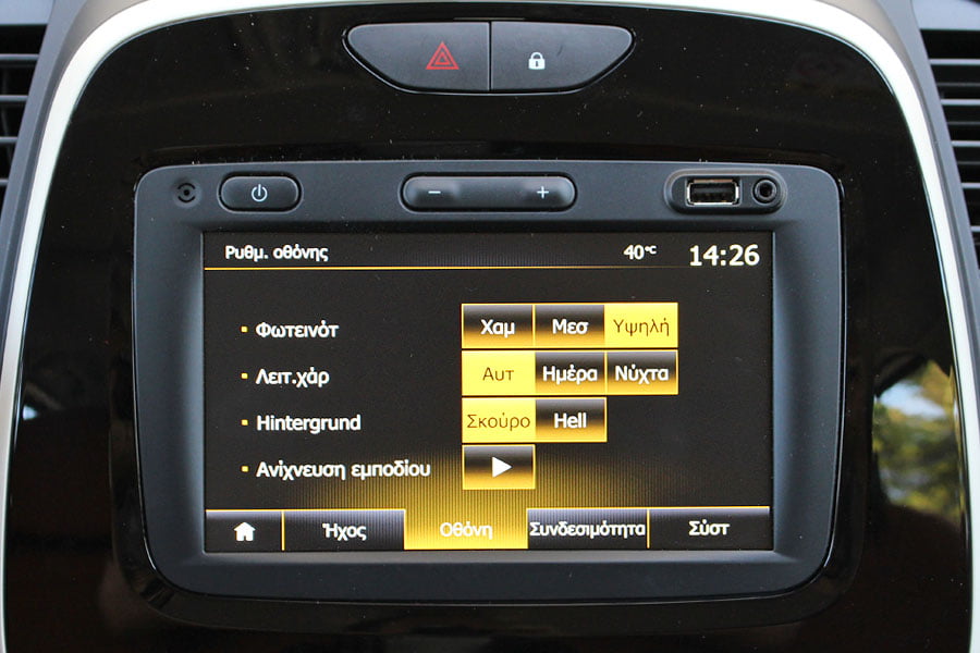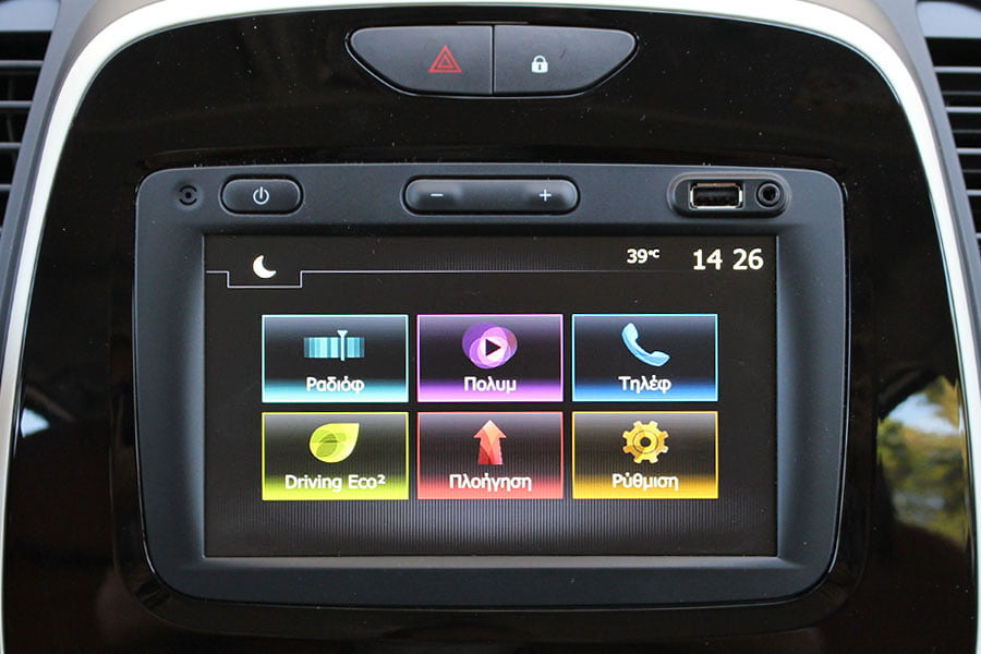 Την πολύ καλή συνολικά εικόνα ενισχύουν με την σειρά τους το μαλακό λεπτό υλικό που καλύπτει το μεγαλύτερο μέρος του ταμπλό, ο μοντέρνος σχεδιασμός και η έγχρωμη οθόνη αφής 7 ιντσών του συστήματος πολυμέσων R-LINK Evolution, το οποίο περιλαμβάνει -μεταξύ άλλων- σύστημα πλοήγησης, κάμερα οπισθοπορείας, Bluetooth, φωνητικό έλεγχο, Android Auto κ.λπ.