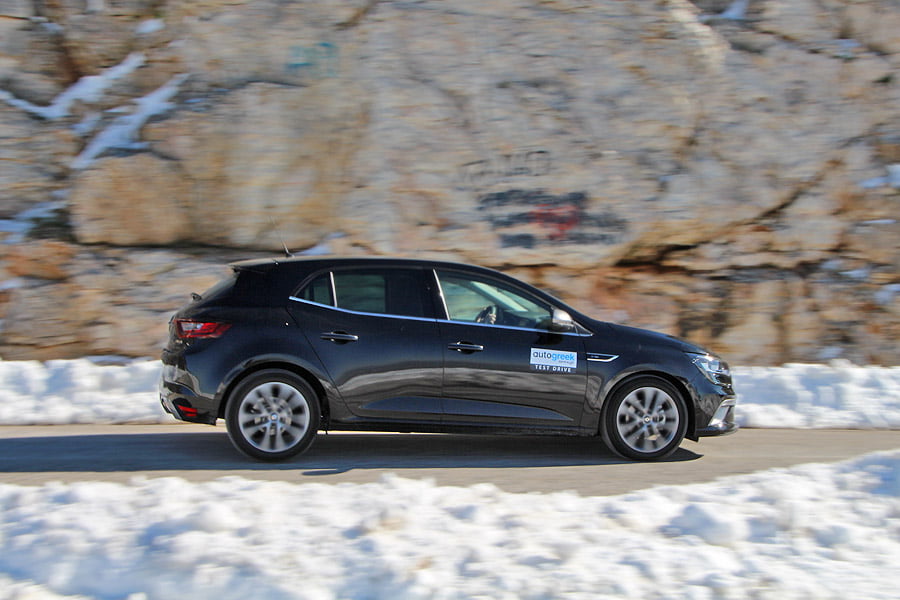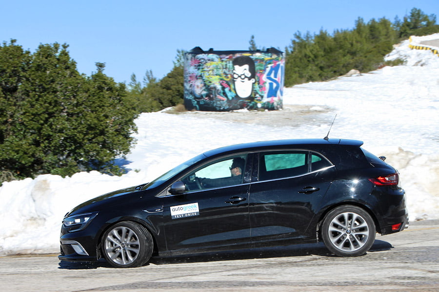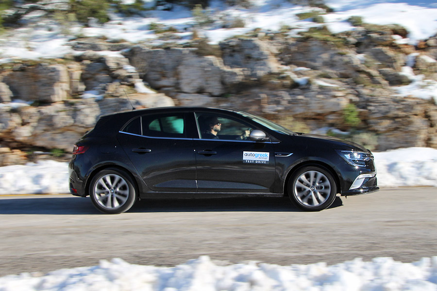 Μεταξύ των σημαντικών θετικών στοιχείων του εσωτερικού του Megane είναι η πολύ καλή ποιότητα κατασκευής. Μαλακά υλικά συναντώνται σε ολόκληρο το ταμπλό και στις εμπρός πόρτες, ενώ η συναρμογή και το φινίρισμα έχουν γίνει με προσοχή. Ο οδηγός θα βολευτεί ιδιαίτερα στο άνετο και με πολύ καλή πλευρική στήριξη τύπου μπάκετ κάθισμα της έκδοσης GT-Line. Στον τομέα των χώρων, το μικρομεσαίο 5θυρο Renault βρίσκεται στο μέσο όρο της κατηγορίας, τόσο για τους επιβάτες, όσο και για τις αποσκευές (384 λτ.).