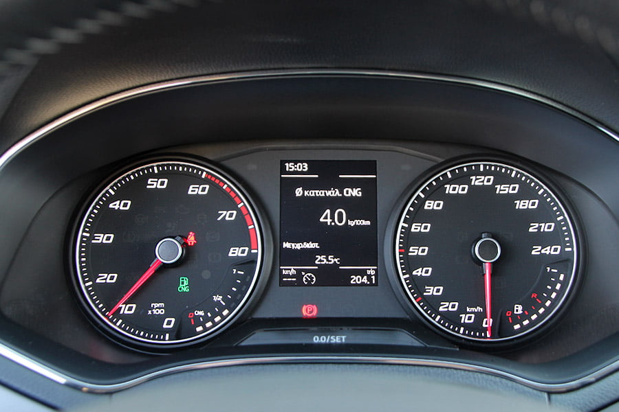 Ο 1.0 TGI βασίζεται στον 1.0 TSI και εξασφαλίζει καλές επιδόσεις (0-100 χλμ./ώρα σε 12,1 δλ. και τελική ταχύτητα 180 χλμ./ώρα), ενώ η ποιότητα λειτουργίας του ικανοποιεί. Στις πολύ χαμηλές στροφές υπάρχει έλλειψη ισχύος, ωστόσο από τις 1.800 σ.α.λ. και άνω που αποδίδεται η ροπή τραβάει θετικά και διατηρεί χωρίς πρόβλημα σβέλτους ρυθμούς, χάρη και στην σωστή κλιμάκωση του εύχρηστου κιβωτίου των 6 ταχυτήτων (130 χλμ./ώρα με 2.900 σ.α.λ.). Εκεί που παίρνει άριστα είναι στην κατανάλωση, αφού σε πραγματικές μεικτές συνθήκες «έκαψε» μόλις 4,0 κιλά/100 χλμ. (ισοδυναμούν με 3,3 ευρώ/100 χλμ. με τιμή φυσικού αερίου 0,834€/kg). Να σημειωθεί ότι η SEAT ανακοινώνει 3,8-4,1 kg/100 χλμ. με WLTP.
