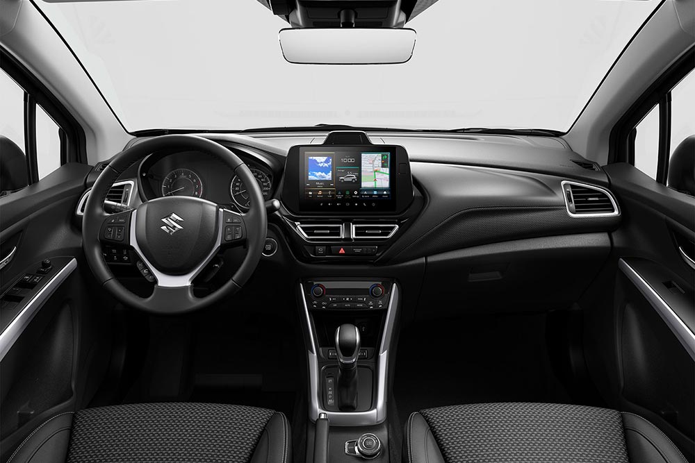 Το ταμπλό με τη μαλακή επένδυση σε ένα τμήμα του φιλοξενεί μια οθόνη αφής 9 ιντσών που όμως είναι κάπως άσκοπα περίπλοκη, με την ύπαρξη πολλών μενού και υπομενού για απλές λειτουργίες που θα μπορούσαν να εκτελούνται με 2 απλά κουμπιά. Επίσης, μια κάποια υστέρηση στην περιήγηση είναι υπαρκτή και ενίοτε ενοχλητική. Από πλευράς εξοπλισμού (GL, GL+, GLX και GLX Sunroof) υπάρχει στάνταρ όλο το πακέτο συστημάτων υποβοήθησης οδηγού (αυτόματο φρενάρισμα, έλεγχος τυφλών σημείων, διατήρηση λωρίδας, ενεργό cruise control), 7 αερόσακους, πλοήγηση και Suzuki Connect για έλεγχο διαφόρων λειτουργιών του αυτοκινήτου μέσω του smartphone, Apple CarPlay και Android Auto, κάμερα οπισθοπορείας (360 view στην έκδοση GLX), αυτόματη λειτουργία φώτων και υαλοκαθαριστήρων, εκκίνηση κινητήρα χωρίς κλειδί, όλες τις ηλεκτρικές ανέσεις, αυτόματο κλιματισμό, θερμαινόμενα εμπρός καθίσματα και πολλά ακόμα.
