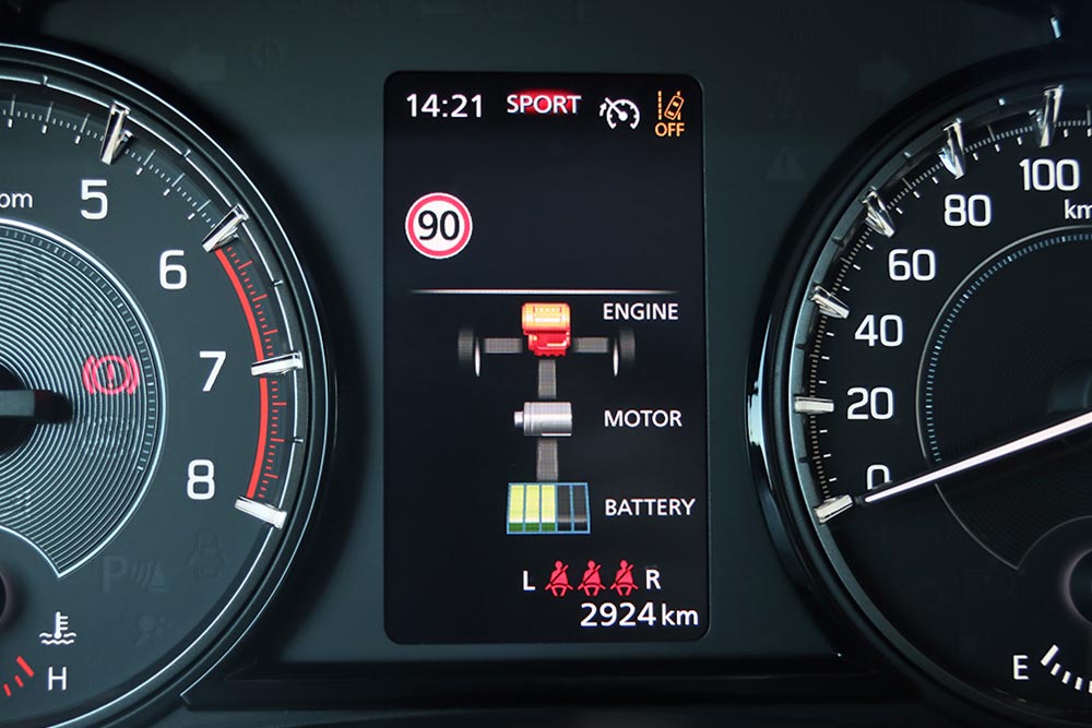 Κάτω από το καπό, ο ήπια υβριδικός 1.400άρης BoosterJet συνεχίζει το εξαιρετικό του έργο. Η απόδοση των 129 ίππων μπορεί να μη φαίνεται πολλή, αλλά τα 235 Nm ροπής και τα εξαιρετικά χαρακτηριστικά λειτουργίας, σε συνδυασμό με την έξοχη κλιμάκωση του 6τάχυτου κιβωτίου, συνθέτουν ένα σύνολο που «πάει» και, πρωτίστως, δεν «καίει». Η επιτάχυνση των 10,2 δλ. για το 0-100 χλμ./ώρα λέει τη μισή αλήθεια για τις επιδόσεις. Τα 130 χλμ./ώρα στις 2.700 σ.α.λ. και η ευκολία με την οποία φτάνει και διατηρείται εκεί το S-Cross, την άλλη μισή. Ο κινητήρας τραβάει δυνατά από τις 1.400-1.500 σ.α.λ., χαίροντας παράλληλα «σπρωξίματος» από το μικρό ηλεκτρικό μοτέρ των 17 ίππων και 50 Nm. Συνδυασμός που σε βοηθά να αποφεύγεις περιττά κατεβάσματα, όπως όταν κινείσαι με 3η και μόλις 40 χλμ./ώρα. Κανένα ρετάρισμα, ελάχιστη (και εντελώς φυσιολογική) υστέρηση μέχρι να «φορτώσει» το μοτέρ, απρόσκοπτη πορεία και φειδωλές απαιτήσεις σε καύσιμο.
