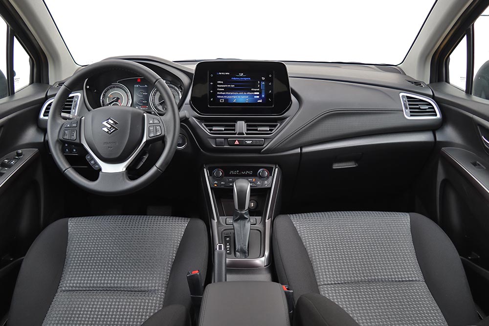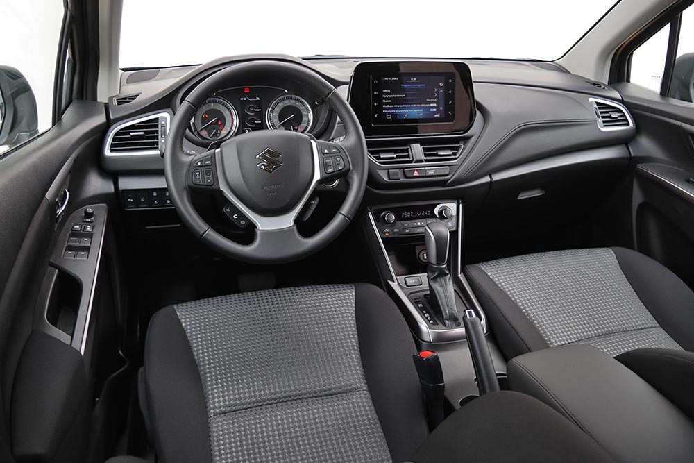Κατά τα λοιπά, το S-Cross μένει πιστό στο τρίπτυχο «ησυχία, τάξη και ασφάλεια». Η απορροφητική ανάρτηση απολαμβάνει πλέον περισσότερης ηχομόνωσης στην καμπίνα, από την οποία διατηρούνται εκτός οι περισσότεροι παρασιτικοί θόρυβοι. Ο τρόπος που ταξιδεύει το S-Cross εντυπωσιάζει, καθώς τόσο τα ντεσιμπέλ των ελαστικών όσο και εκείνα από τον αέρα, διατηρούνται απρόσμενα χαμηλά. Παρά τον ημιάκαμπτο άξονα πίσω, «σκορτσαρίσματα» θα εμφανιστούν μόνο σε διαδοχικές ανωμαλίες διαρκείας από κατσαρό οδόστρωμα. Λακκούβες, σαμάρια, φρεάτια και λοιπά συμπαμαρτυρούντα των ελληνικών δρόμων αντιμετωπίζονται επιτυχώς, προσδίδοντας έναν ευχάριστα ποιοτικό τόνο στην κίνηση του Suzuki. Στις στροφές αυτό σημαίνει πως θα έχεις λίγες κλίσεις, ενώ και το τιμόνι παρουσιάζεται κομμάτι αργό. Το 215άρι πέλμα των ελαστικών σπάνια θα νικηθεί από την ισχύ του μοτέρ, οδηγώντας το εμπρός μέρος σε άνοιγμα τροχιάς. Από την άλλη, το 55άρι προφίλ συνεισφέρει τα μάλα στην αποφόρτιση της ανάρτησης και την άνεση, ενώ βοηθά και εκτός δρόμου – σε συνέργεια με τα 175 χλστ. της απόστασης από το έδαφος. Ελλείψει συστήματος τετρακίνησης, πάντως, επιβάλλεται η δέουσα προσοχή. Να υπενθυμίσουμε ότι διατίθεται και με τετρακίνηση από την GL+ και άνω, με τιμή εκκίνησης τις 26.420 ευρώ.