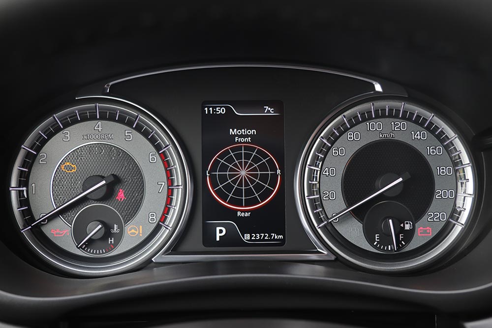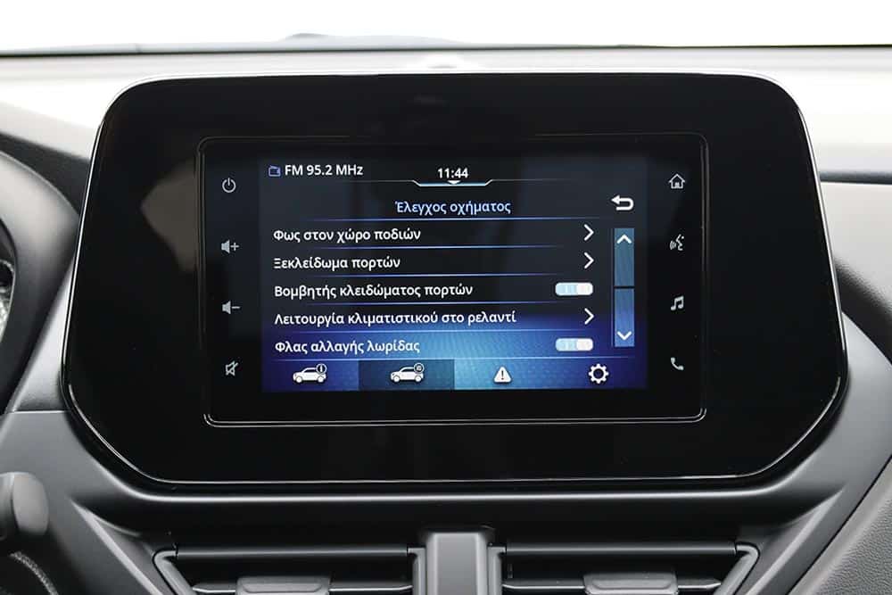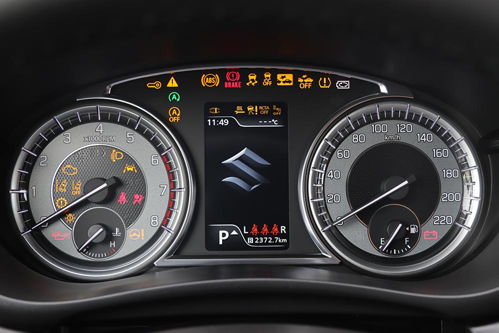 Ανάλογη επιτυχία είχαν οι άνθρωποι της Suzuki και στην καμπίνα των επιβατών. Το ταμπλό χαρακτηρίζεται από την τοποθέτηση της νέας οθόνης αφής στην κορυφή και πάνω από τους αεραγωγούς, μετρώντας 7 ίντσες (9 στην έκδοση GLX) και διαθέτοντας στο σύστημα πολυμέσων όλες τις καθιερωμένες λειτουργίες συνδεσιμότητας (Apple CarPlay, Android Auto και Bluetooth). Τα υλικά εμφανίζονται καλύτερα τόσο σε ποιότητα, όσο και όψη/αφή. Ιδίως το μαλακό μαλακό πλαστικό που συναντάται μπροστά από το συνοδηγό, ανεβάζει επίπεδο και το διάκοσμο. Η συναρμογή διατηρείται σε κορυφαίο επίπεδο, όπως και η εργονομία. Κάθε διακόπτης είναι τοποθετημένος εκεί που τον περιμένεις, η οθόνη «ακούει» καλύτερα στην αφή και, γενικότερα, ο έλεγχος των λειτουργιών γίνεται απροβλημάτιστα.