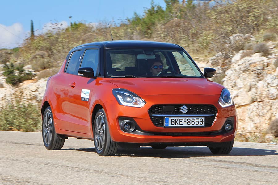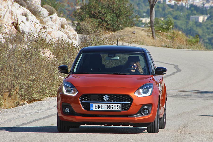 Το Suzuki Swift ανέκαθεν ξεχώριζε για την ευκολία που προσφέρει στην οδήγηση και στους χειρισμούς, καθώς και για τον ευχάριστο οδηγικό του χαρακτήρα. Το ανανεωμένο Swift Hybrid μπορεί να έχασε λίγη σπιρτάδα σε επιδόσεις, όμως παραμένει ένα fun to drive μικρό αυτοκίνητο. Σε αυτό συμβάλλουν η ελαφριά αλλά με πολύ καλή ακαμψία πλατφόρμα και οι αναρτήσεις με την σφιχτή ρύθμιση. Χαρακτηριστικό που σε κάποιους αρέσει, αλλά σε όσους δίνουν βάρος στην άνεση όχι, αφού σε πιο έντονες ανωμαλίες του δρόμου οι αντιδράσεις είναι σχετικά ξερές και κυρίως από τον ημιάκαμπτο πίσω άξονα. Το Swift ελίσσεται με ευκολία στους στενούς δρόμους και παρκάρει εύκολα. Εκτός αστικού περιβάλλοντος κινείται ευθύβολα σε γρήγορους ρυθμούς. Το τιμόνι είναι αρκετά άμεσο και με καλή πληροφόρηση, τα φρένα ισχυρά (δισκόφρενα πίσω στην έκδοση GLX) και το πεντάρι κιβώτιο έχει ευχάριστο κούμπωμα, ενώ δεν θα πει όχι και σε γρήγορες αλλαγές ταχυτήτων.