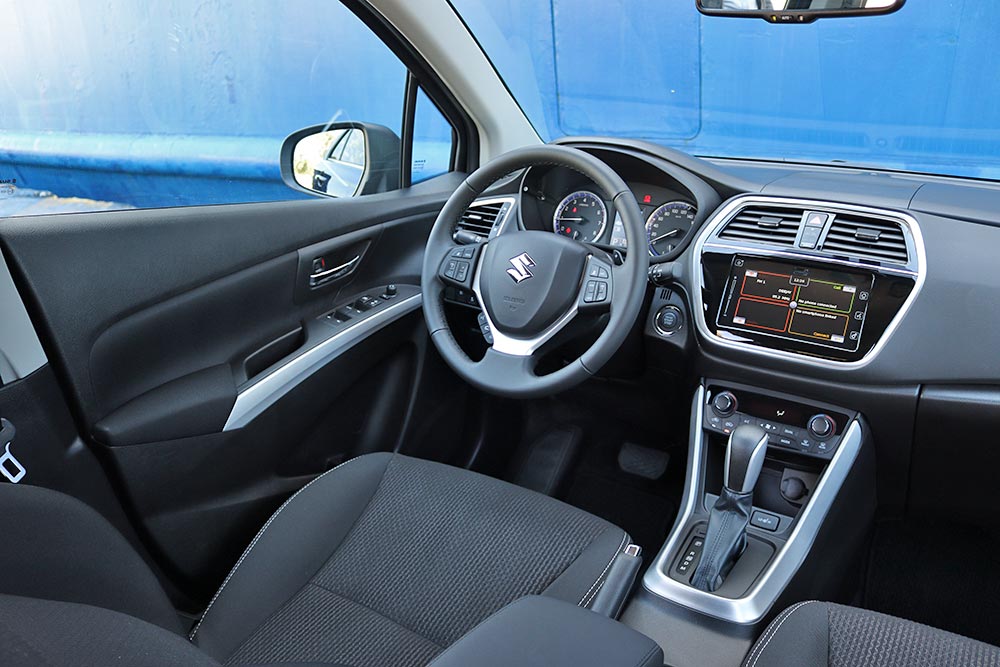Ο διάκοσμος είναι παραδοσιακός Suzuki: σκληρά πλαστικά, ως επί το πλείστον, σε ταμπλό και πόρτες (εξαίρεση το λεπτό μαλακό στο εμπρός τμήμα του ταμπλό), ποιοτικά σε εφαρμογή και με την αίσθηση πως θα σταθούν αγέρωχα στο πέρασμα των ετών. Η οθόνη αφής των 7 ιντσών στο κέντρο του δίνει την απαραίτητη high tech νότα, όμως κάποιες φορές δεν ανταποκρίνεται άμεσα στο άγγιγμα του δακτύλου.