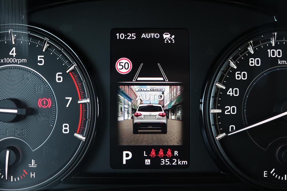 Ολόκληρος ο πυρήνας του Vitara, διαχρονικά, δίνει προτεραιότητα στην ουσία. Το «είναι», αντί του «φαίνεσθαι». Το δηλώνει ξεκάθαρα σχεδιαστικά, αλλάζοντας προσεκτικά στοιχεία εδώ και 11 χρόνια (πότε πέρασαν ε) που βρίσκεται στην αγορά η τέταρτη γενιά, το επαληθεύει και με τον εσωτερικό του κόσμο. Η ψηφιακότητα είναι παρούσα, μέσω της οθόνης αφής 9 ιντσών για το σύστημα πολυμέσων, αλλά συνοδεύεται από αξιοζήλευτη προσοχή στην εργονομία και την ευχρηστία. Η εικόνα του ταμπλό αποτελεί ευχάριστο διάλειμμα από τον ορυμαγδό μόνιτορ και μενού/υπομενού που κατακλύζουν τα καινούργια αυτοκίνητα, παρέχοντας μια τόσο απαραίτητη ησυχία στο κεφάλι του οδηγού.