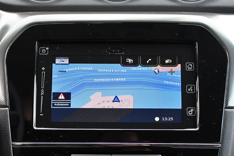 Καμία αλλαγή δεν υπάρχει στο εσωτερικό του Vitara Hybrid, αφού άλλωστε μετά την τελευταία ανανέωση που έγινε πριν από δύο χρόνια, το ταμπλό απέκτησε μαλακό στην αφή υλικό στο πάνω μέρος του. Τα υλικά στο υπόλοιπο μέρος του ταμπλό και της κεντρικής κονσόλας είναι σκληρά, αλλά δείχνουν ανθεκτικά, όμως τα πλαστικά στις πόρτες είναι σχετικά φθηνά σε όψη και υφή. Κυρίαρχα στοιχεία αποτελούν η οθόνη αφής των 7 ιντσών του συστήματος πολυμέσων, ο σπορτίφ πίνακας οργάνων, οι στρογγυλοί αεραγωγοί και το αναλογικό ρολόι στο κέντρο του ταμπλό, που συναντάται στην πλουσιότερη έκδοση GLX. Κατά τα άλλα, η θέση οδήγησης είναι σωστή, αρκούντως ψηλή και με ικανοποιητική παροχή πλευρικής στήριξης.