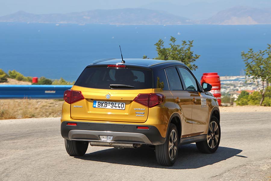 Το Vitara εμφανίζεται ευχάριστο στην οδήγηση, χάρη στον πολύ καλό συνδυασμό του ελαστικού και αποδοτικού κινητήρα και της ανάρτησης με τη σφιχτή ρύθμιση. Η τελευταία κοντρολάρει το αμάξωμα, αν και σε διαδοχικές ανωμαλίες του οδοστρώματος δεν λείπουν οι αναπηδήσεις από τον ημιάκαμπτο πίσω άξονα. Το τιμόνι έχει σωστό βάρος και ικανοποιητική ακρίβεια, ωστόσο και σε ορισμένες περιπτώσεις «χάνει» σε επαναφορά ζητώντας ένα ίσιωμα από πλευράς οδηγού. Τα φρένα από την πλευρά τους εκπλήσσουν ευχάριστα σε αίσθηση και απόδοση. Στις ευθείες των αυτοκινητοδρόμων το Vitara παρουσιάζει πολύ καλό πάτημα ακόμα και σε γρήγορους ρυθμούς, όπως και σε διαδρομές με στροφές. Εκεί, υπό πίεση αρχικά θα ανοίξει ελαφρώς την τροχιά του, όμως αν επιμείνει ο οδηγός στο γκάζι, το σύστημα τετρακίνησης AllGrip θα στείλει πίσω όση ροπή χρειάζεται για να γλιστρήσει ελαφρά με τα τέσσερα και να κόψει την υποστροφή.